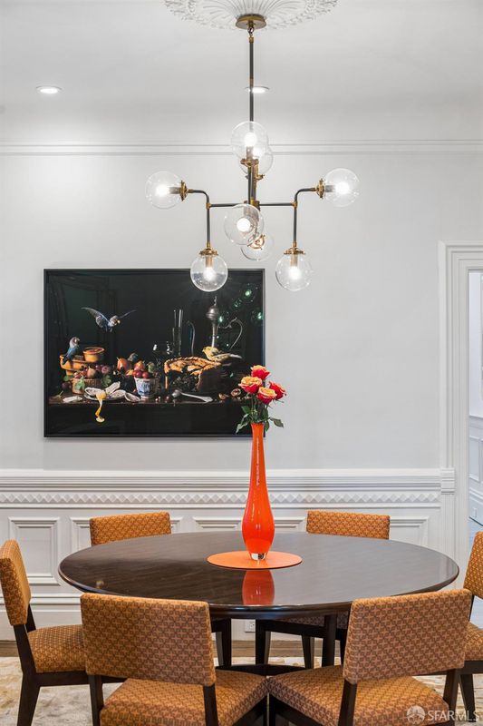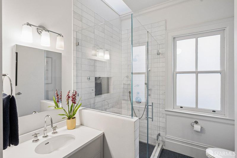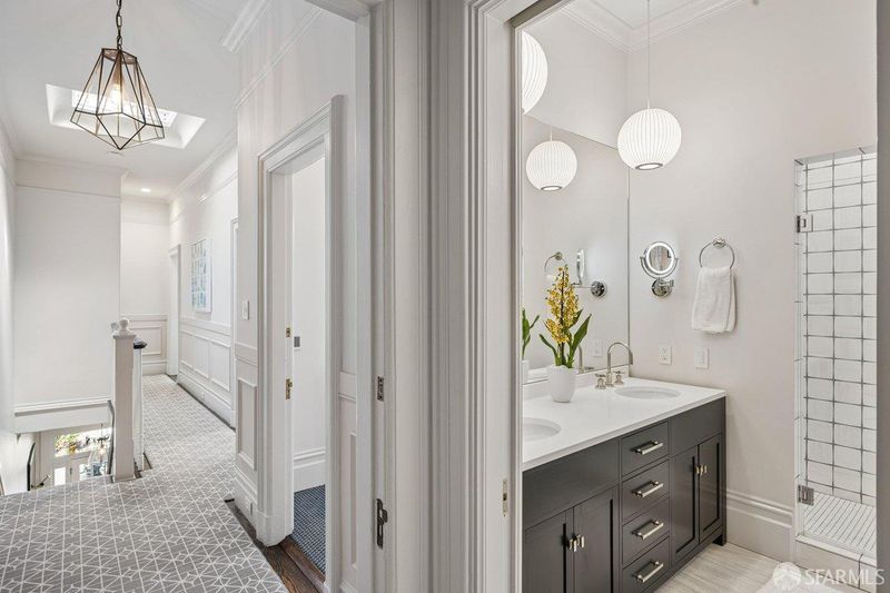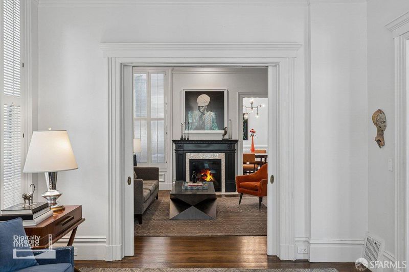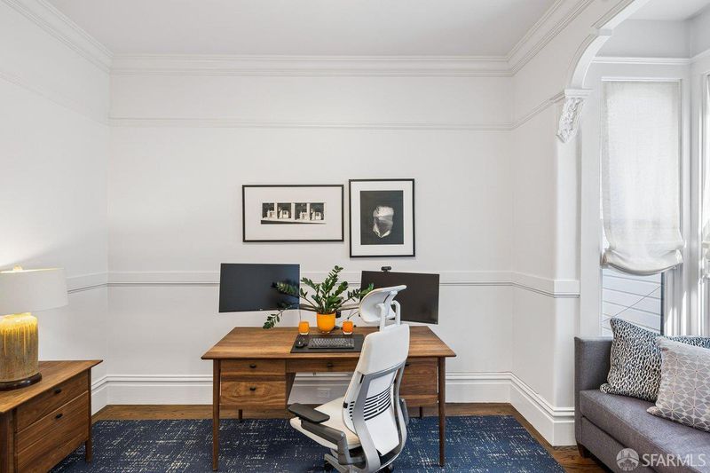 Experience the best of San Francisco living in this exceptional three-level residence where timeless Victorian craftsmanship meets modern luxury and functionality. Behind its elegant facade, the home unfolds with impressive scale, soaring ceilings, and abundant natural light enhanced by skylights throughout. Original period details including intricate wainscoting, crown molding, and custom millwork blend seamlessly with thoughtful contemporary updates, creating a refined yet highly livable aesthetic. The main level is designed for both elevated entertaining and everyday ease, featuring formal living and dining rooms with classic pocket doors, expansive windows, and rich wood flooring. At the heart of the home, a beautifully remodeled kitchen offers high ceilings, designer finishes, and direct access to a private deck, creating effortless indoor-outdoor flow. Upstairs features three generously sized bedrooms and two well-appointed bathrooms, one with downtown views, including a serene primary suite with ample closet space and tranquil garden outlooks. The lower level adds exceptional flexibility with a spacious family/bedroom ideal for home office or quest bedroom. Outdoor living is equally compelling, with a connected deck and terraced garden patio providing a rare urban retreat. A detached structure, formerly a garage, has been thoughtfully reimagined as a private home gym or studio, perfect for modern living. Completing this offering is rare 3-4 car parking via the driveway, an extraordinary convenience in San Francisco. Ideally located in the heart of the city, near the Castro and the Nopa shopping districts just moments from top dining, shopping, parks including Buena Vista Park, Panhandle, and transit. Blending historic elegance with modern livability, this home delivers the space, flexibility, and indoor-outdoor lifestyle today's luxury buyer demands.