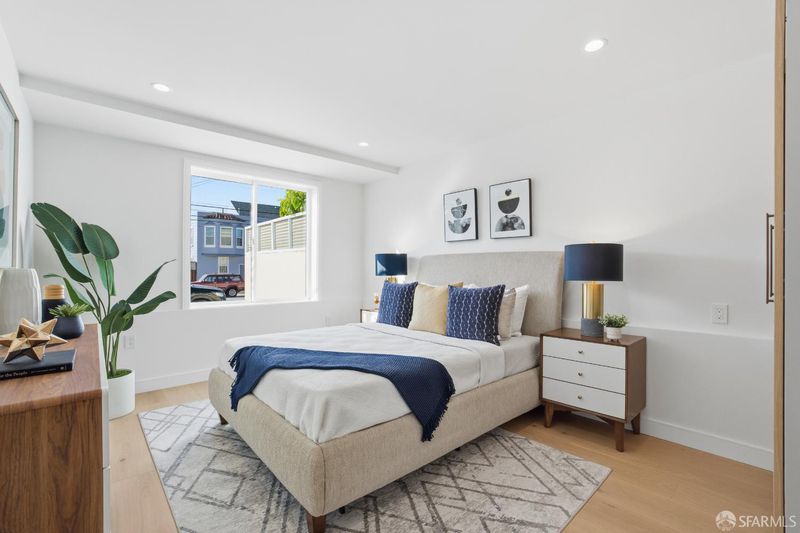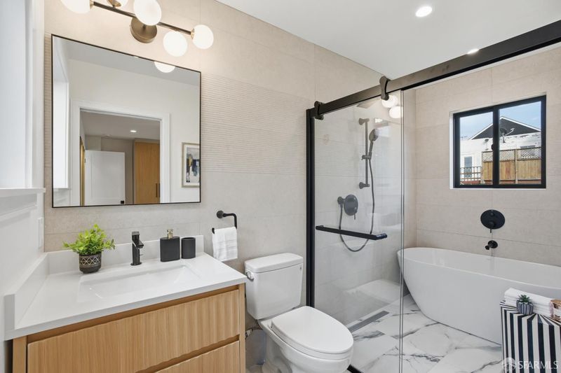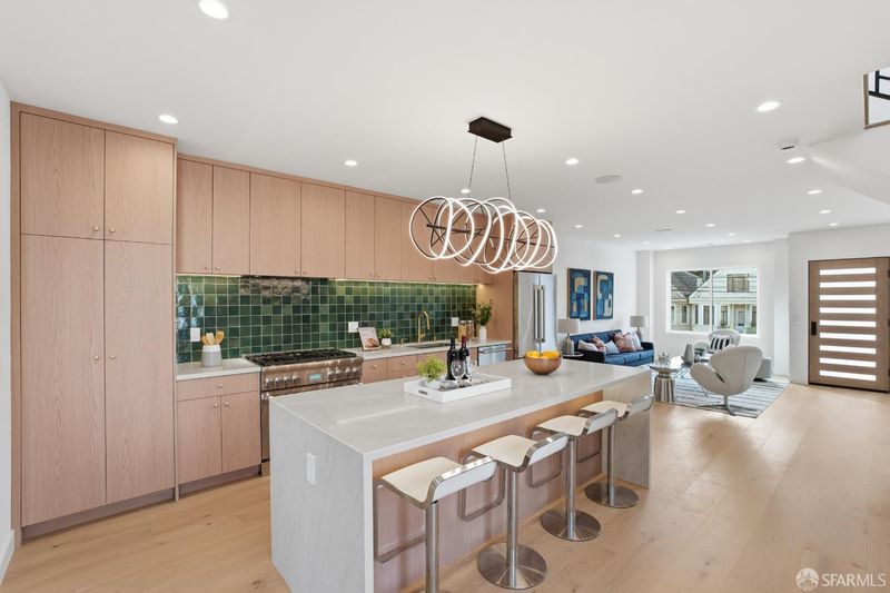 Welcome home to 511 Edinburgh St, a stunning Victorian classic lovingly restored from the studs up to create a warm, modern sanctuary in the heart of the vibrant Excelsior District. The undisputed focal point of this residence is the chef-inspired kitchen, a masterpiece of design that balances beauty with high-end utility. Anchored by a dramatic Taj quartz waterfall island and striking green Zellige tile, the space features a suite of sleek Thermador appliances and custom-built cabinets equipped with premium Blum hardware. This culinary heart flows naturally into the dining area, which opens to a petite roof deck and provides direct access to the backyard, perfect for hosting and daily life. The home's thoughtful reimagining includes two luxurious primary suites designed for ultimate flexibility. The first primary retreat is conveniently located on the main living level, offering a peaceful escape with a spa-like ensuite bathroom and a dedicated soaking tub. The lower level features two additional bedrooms, including the second primary suite, providing a private haven that connects to the media and family room. From this lower level, the living space transitions seamlessly to the backyard's uncovered patio, epitomizing the California indoor-outdoor lifestyle. Throughout the open, light-filled layout, you will find beautiful engineered oak flooring and sophisticated finishes. The third floor serves as an elevated vantage point for the home, where a spacious, flexible bedroom offers a quiet retreat with clear, iconic views of Sutro Tower an ideal space for a guest room, a quiet nursery, or an inspiring home office. Beyond its aesthetic charm, the property is a modern marvel of efficiency, boasting brand-new plumbing and 200amp electrical systems, integrated EV charging, in-ceiling speakers, and a hard-wired security system. Every detail of this exquisite restoration has been crafted to offer a perfect blend of historic soul and contemporary luxury.
