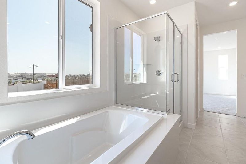 - Double Sinks, Primary - Stall Shower(s), Shower over Tub - 1, Tile, Tub in Primary Bedroom