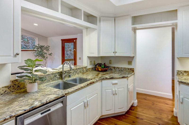 Find tranquility in a Monterey neighborhood that places you minutes from exceptional restaurants and legendary golf. Just down the street from Del Monte Golf Course (the oldest operational course west of the Mississippi), this single-level home sits on half an acre of tree-studded land. Set back from the road and fronted by an expansive driveway, it offers a palpable sense of privacy and calm. Step into a chic, warm living room, where elevated ceilings draw your eye upward and into the heart of the home. Wide-plank Douglas fir floors lead past a fireplace into a second, more informal living space. High-set picture windows emphasize the elegant pitch of the ceiling and frame lush glimpses of an ivy-covered hillside. Use this room as a study, a dining room, or that elusive thing you've always dreamed of having in a home. A pass-through window connects a breakfast bar to a beautiful kitchen with custom cabinetry, granite countertops, stainless steel appliances, and a gas range. With sliding glass doors in two of three bedrooms and wide windows seemingly all around you no matter where you stand, this home delivers effortless indoor-outdoor living. Come discover all the wonderful built-ins and luxurious finishes throughout this home, and start living your life the way you really want.