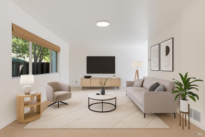 Experience comfort and style in this beautifully updated 3 bedroom, 1.5 bath attached single family home (PUD), ideally positioned as a prime corner unit for extra privacy and light. Fresh interior paint and new carpet create a light, welcoming feel throughout, while updated bathrooms add a modern touch. Large windows showcase stunning, sweeping views of the bay, offering a serene backdrop to everyday living. Enjoy year round comfort with central heating and air conditioning, plus the convenience of an included washer and dryer. The oversized two car garage provides ample storage and parking. Perfectly located near parks, shopping, and freeway access, this home combines comfort, style, and an unbeatable location all in one of Benicia's most desirable communities. No rental restrictions.