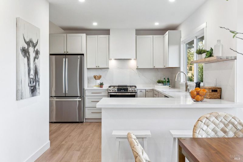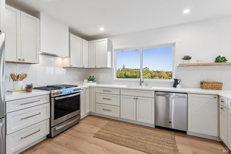 Welcome to a stunning recently remodeled custom home located in the charming BlackPoint community of Novato. This upscale neighborhood offers a rural feel with breathtaking views, surrounded by nature & centered around the Bay Club. This property has undergone extensive improvements, incl fresh int & ext painting, fully remodeled bathrooms, & the addition of all Milgard windows & sliding glass drs . All the outdoor decks have been updated, providing ample space for entertaining. Enter to discover a modern kit featuring new GE Profile appliances, ample storage, quartz countertops, & a convenient peninsula that opens to the dining area. The kitchen also incl a cozy eating area. Upstairs, an open-concept entertaining area boasts beamed cathedral ceilings & a stunning floor-to-ceiling stone gas fireplace, half bathroom, double door entry, creating a warm & inviting atmosphere. All 3 bdrms , located downstairs, have been freshly appointed, ensuring comfort & style throughout. The primary bdrm is a true retreat, complete with a spacious walk-in closet & a private balcony that overlooks the backyard. The downstairs also incl a guest bathroom & the laundry rm provides access to a lovely deck. Experience the best of Blackpoint living where luxury meets nature in this exquisite home.