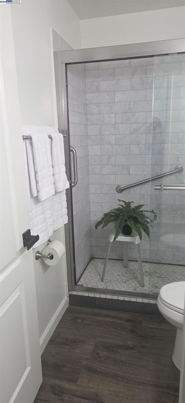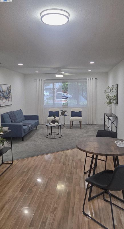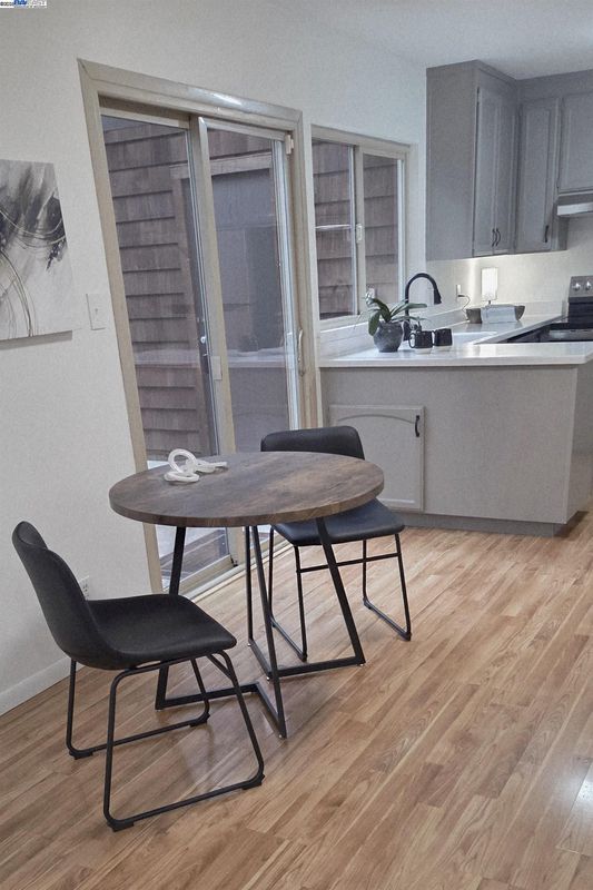 Marvelous move-in ready 2 bedroom, 1 bath townhouse. Single story end unit. Only one shared wall and no one above. No stairs level-in entry. Located in a lovely complex with mature landscaping and abundant trees. Close to I-580, BART and in the highly rated Castro Valley school district. Easy access to downtown Castro Valley shops and restaurants including the new Mei Mei Market. Two dedicated parking spaces (one covered) near the front of the unit. New carpet in living room and bedrooms. Bath, dining and kitchen have easy care wood-look vinyl flooring. Freshly painted inside. Kitchen has all new SS appliances. Bathroom has a walk-in shower. Dual pane windows, newer furnace, AC, smart thermostat and ceiling fans keep things comfortable year-round. In-unit laundry with full size washer and dryer to stay. Fully fenced patio with large storage closet. Pet friendly complex.