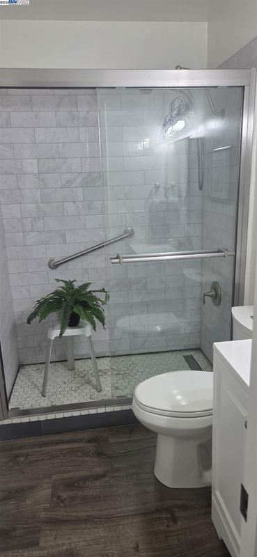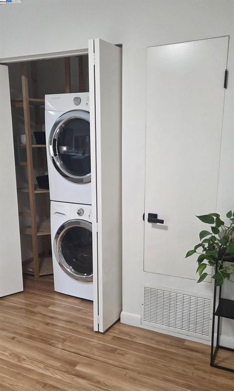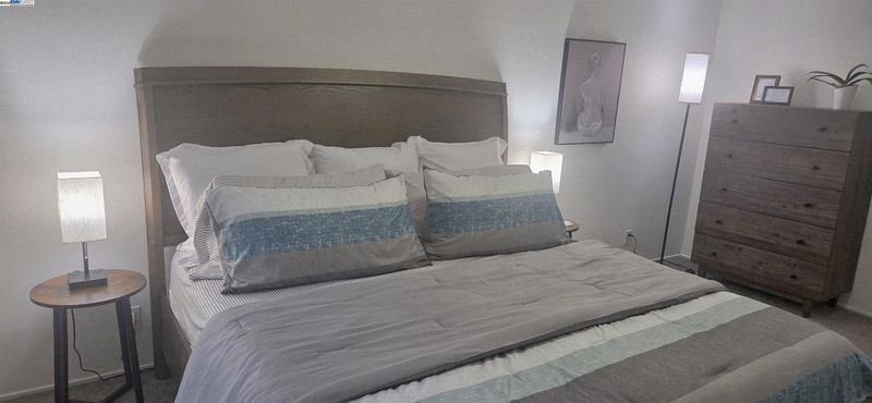 Marvelous move-in ready 2 bedroom, 1 bath Condominium. Single story end unit. Only one shared wall and no one above. No stairs level-in entry. Located in a lovely complex with mature landscaping and abundant trees. Close to I-580, BART and in the highly rated Castro Valley school district. Easy access to downtown Castro Valley shops and restaurants including the new Mei Mei Market. Two dedicated parking spaces (one covered) near the front of the unit. New carpet in living room and bedrooms. Bath, dining and kitchen have easy care wood-look vinyl flooring. Freshly painted inside. Kitchen has all new SS appliances. Bathroom has a walk-in shower. Dual pane windows, newer furnace, AC, smart thermostat and ceiling fans keep things comfortable year-round. In-unit laundry with full size washer and dryer to stay. Fully fenced patio with large storage closet. Pet friendly complex.