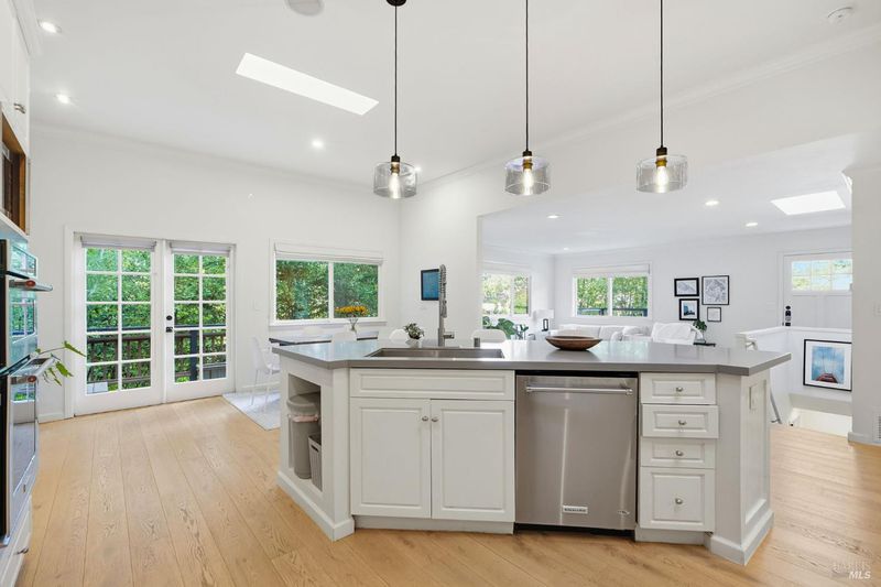 Remodeled 3BD/2BA + Office with Open Floor Plan, Chef's Kitchen, Views, Deck & Modern Finishes. This beautifully renovated home offers the perfect blend of comfort, privacy, and style. The open floor plan seamlessly connects the living room, dining area, and chef's kitchen, creating a spacious and light-filled environment with multiple skylights. The kitchen features a large center island, expansive countertops, sleek stainless steel appliances, a Gas stove, and a double oven. Gorgeous wide-plank engineered wood floors run throughout, adding warmth and elegance. Large windows and sliding doors fill the home with natural light, showcasing peaceful views of the surrounding hills and trees. The setting feels private and serene, while the interiors display a cozy, charming ambiance that makes the home truly special. Multiple decks and terraces provide ample space to relax, dine, or entertain outdoors, perfect for taking in the views and enjoying the Marin lifestyle. The home is in pristine condition, featuring central A/C, multiple skylights, a 2018 Roof,dual-pane windows, and thoughtful upgrades throughout. Located in a highly desirable San Anselmo neighborhood, this property offers both privacy and conveniencejust minutes from town and trails.