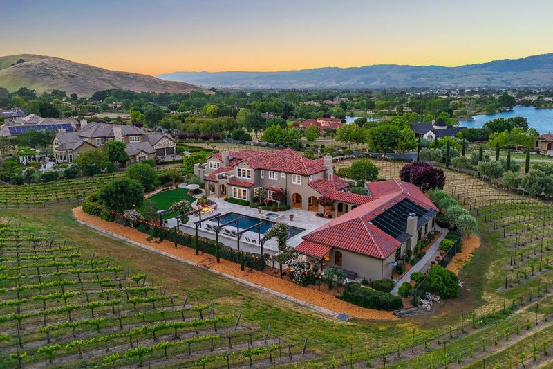 Welcome to CordeValle Estates, this elegant home offers 5 bedrooms, including au-pair quarters, large bonus room, French doors opening to patios, sprawling lawn, vineyard views, & oak-studded foothills. Gourmet kitchen features top-of-the-line appliances, butler's pantry, wine pantry with a Sub Zero wine storage, formal dining room perfect for entertaining. One bedroom/ full bath are conveniently located on the main level. Separate pool cabana offers a pool equipment room, kitchen, full bathroom, gym, craftroom & loggia w/ approx 2100sf of additional space. Private backyard oasis with travertine tile, creating a seamless outdoor living space. Two pondless fountains provide calming sounds. Enjoy the gorgeous pool & spa with stunning views of rolling hills and oak trees. The yard features an oversized gas fire pit for cozy gatherings and a bocce ball court for leisure. This outdoor retreat offers relaxation and entertainment in a luxurious setting. Located minutes from CordeValle Resort golf, spa, and dining, combining luxury living with wine country charm. A rare opportunity to own in one of Silicon Valleys most prestigious gated communities!
