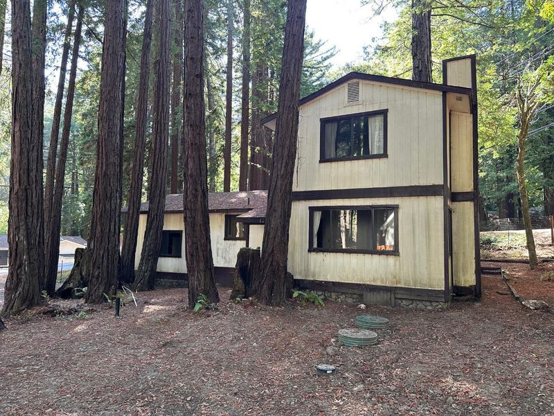 Three bedroom + two bath with attached garage in redwood setting near Memorial Park. Ten minute drive to the ocean and 45 minute drive to Interstate 280 and Sand Hill Rd. Great opportunity to create your dream home in the redwoods.