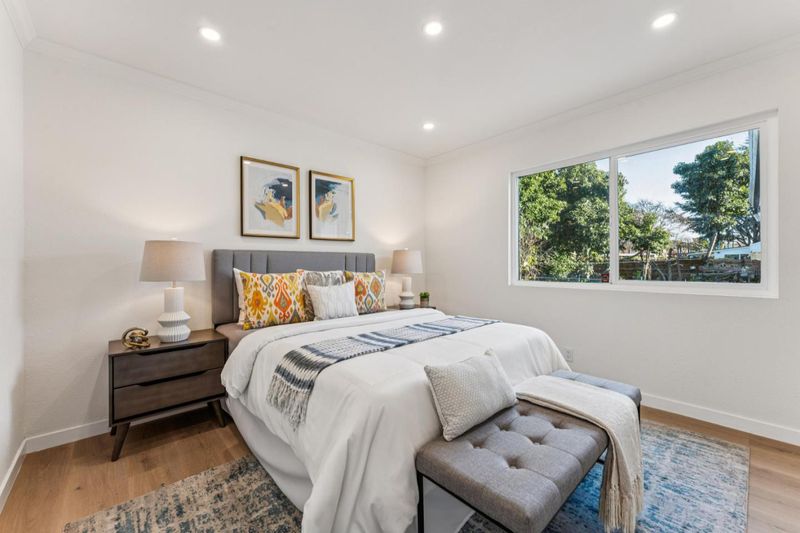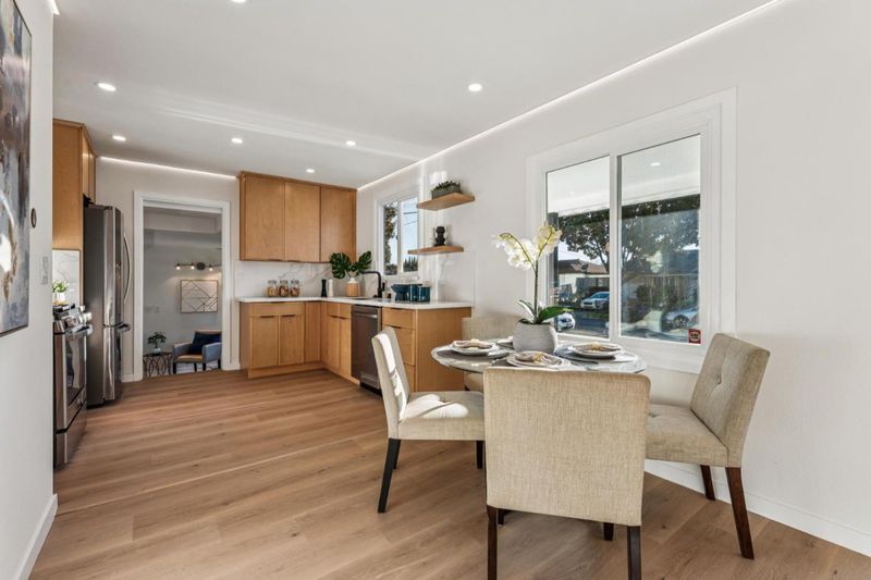 Gorgeous & Exceptional! This fully detached single-family home offers 1,326 sq ft of thoughtfully designed living space on a generous 5,000 sq ft lot, featuring 3 bedrooms and 2 bathrooms, including a primary suite. The bright and airy open-concept living and dining area flows seamlessly into a modern gourmet kitchen with quartz countertops, custom cabinetry, and stainless-steel appliances. Additional highlights include a spacious primary suite and a versatile family room or home office. Recently beautifully updated with fresh interior and exterior paint, new luxury vinyl plank flooring, and a Google smart thermostat. The washer and dryer are conveniently located in the utility room. Step outside to a generous backyard, perfect for BBQs, family gatherings, or quiet relaxation. A driveway accommodates two cars. A commuters dream with quick access to I-880 and connecting freeways, this ideal East Bay location is minutes from Costco, Walmart, Home Depot, Oakland International Airport, dining, shopping, quality schools, public libraries, and all everyday conveniences. A true gem, must see!
