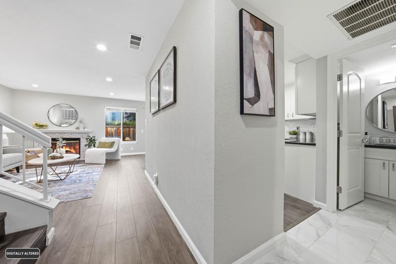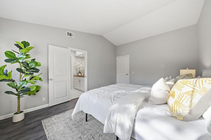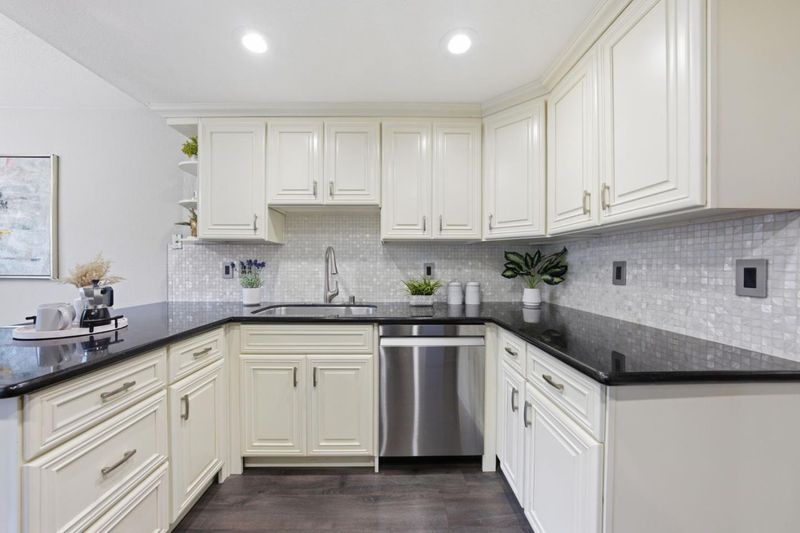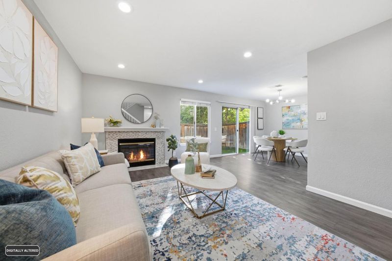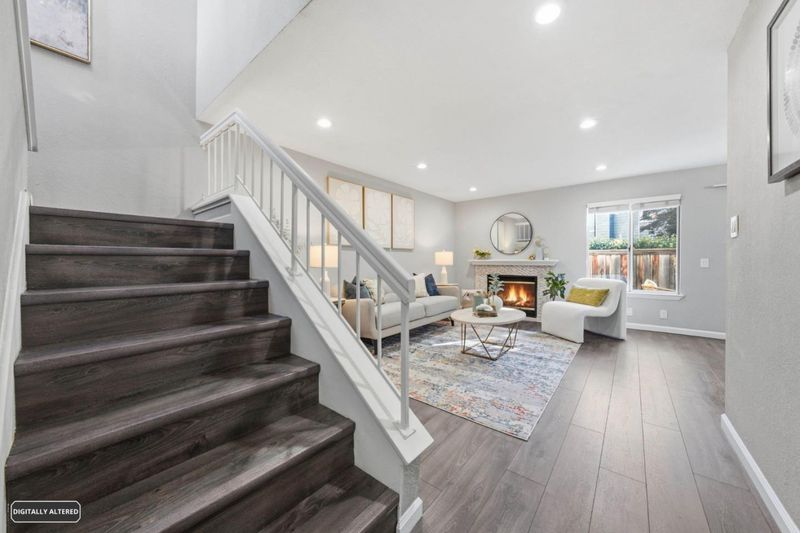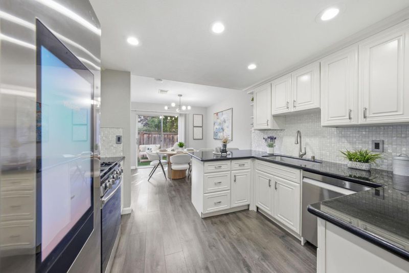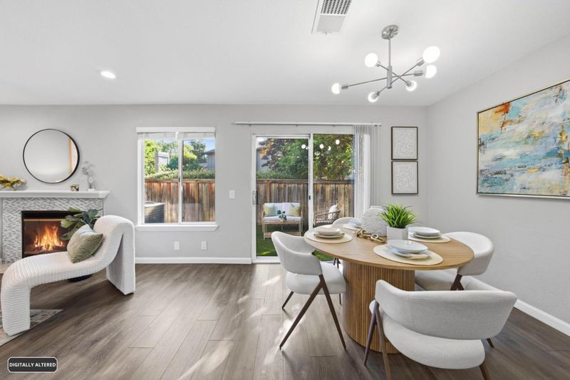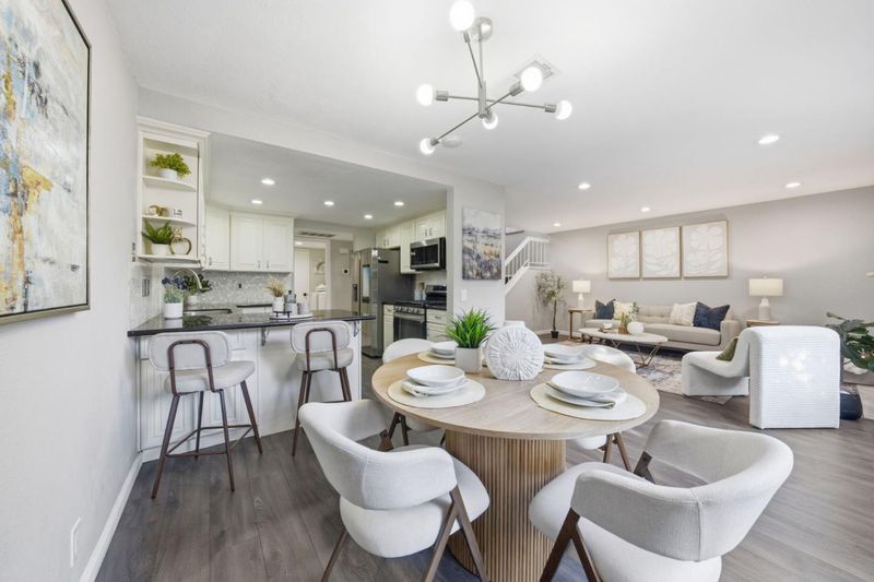 Nestled along nature with mature trees, this exquisite, bright townhouse is situated in the tranquil Deer Run II community. It features an open, sunlit layout with a desirable spacious kitchen and two bedrooms, each complemented by its own private bathroom. The living room includes a mosaic-tiled fireplace, and the dining area is generously sized. The remarkable kitchen boasts sleek stainless steel appliances, granite countertops, a spacious breakfast bar, and premium cabinetry/backsplash. The main bedroom retreat is especially luxurious, featuring a vaulted ceiling and walk-in closet. Additional amenities include recessed lighting, dual pane windows, central AC/heating, indoor laundry, a new double-strapped water heater, a new MyQ app-compatible garage door opener, a 220 Plug available for EV charging, and a fully finished two-car garage. The home offers a large private patio with easy maintenance artificial turf and access to a community pool and common areas. It is conveniently located near tennis courts, Edenvale Gardens Regional Parks, and Hayes Mansion. Open-house Saturday & Sunday, 1-4PM.
