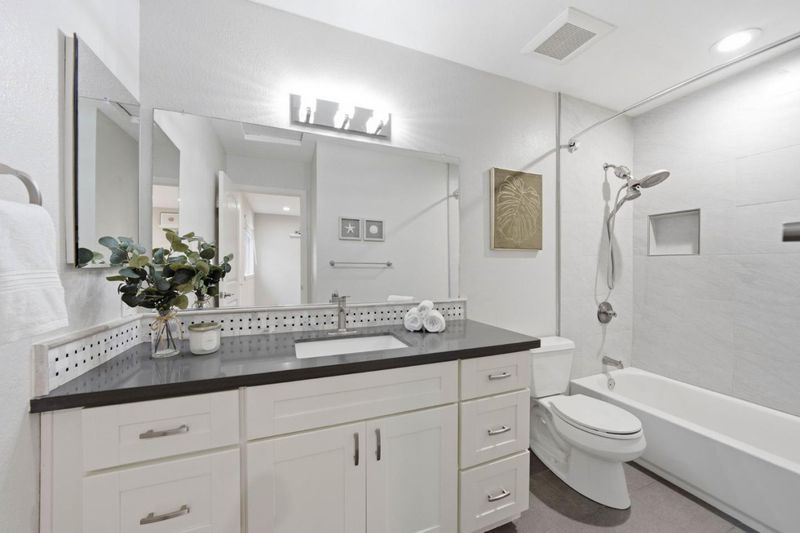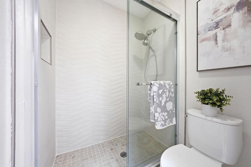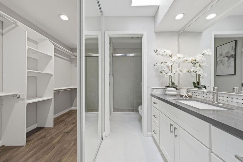 - Double Sinks, Half on Ground Floor, Primary - Stall Shower(s), Shower over Tub - 1, Skylight, Solid Surface, Tile, Updated Bath