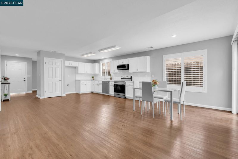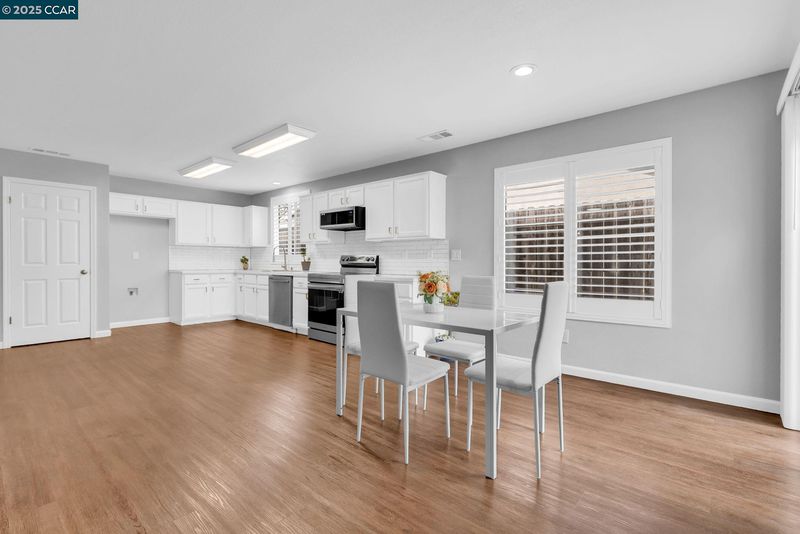 Beautifully Updated Home With No Rear Neighbors! Discover move-in-ready comfort in this beautifully refreshed Patterson home featuring fresh interior and exterior paint and recent luxury vinyl plank flooring throughout. The heart of the home is the recently remodeled gourmet chef’s kitchen, showcasing new quartz counters, a stylish decorator backsplash, stainless steel appliances, and abundant workspace—perfect for cooking and entertaining. Enjoy multiple living areas, including a spacious family room just off the kitchen and a separate living room offering flexibility for gatherings, relaxation, or a home office setup. Both bathrooms have been tastefully updated, adding to the home’s modern appeal. Thoughtful upgrades continue with canned lighting, dual-pane windows, and a dual-pane sliding glass door, enhancing energy efficiency and natural light. Outside, you’ll love the welcoming front porch, low-maintenance landscaping, and a large rear patio—ideal for outdoor dining and enjoying peaceful evenings with no rear neighbors for added privacy. Located close to schools, parks, and shopping, this home offers outstanding convenience in a friendly neighborhood. A fantastic opportunity you won’t want to miss—come see all that 432 Red Robin Drive has to offer! No Mello Roos!