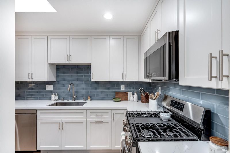 Tucked away on a quiet cul-de-sac in Sonoma's sought-after Creekside 55+ community, this exceptional, remodeled home offers the rare combination of refined design, thoughtful functionality, and true turn-key living ready for you to simply arrive and enjoy. Reimagined from top to bottom with no expense spared, the home immediately welcomes you with light-filled spaces, gorgeous white oak engineered floors, recessed lighting, and an enclosed atrium with skylight that brings warmth and natural light into the heart of the home. The beautifully remodeled kitchen features custom cabinetry, upgraded countertops, and premium appliances, opening seamlessly to inviting living and dining areas that feel both elegant and comfortable, ideal for everyday living or hosting friends and family. The floor plan is particularly well suited for ease and flexibility, with bedrooms thoughtfully positioned on opposite ends of the home for privacy, and a serene primary suite that opens directly to the backyard perfect for slow mornings, fresh air, and quiet evenings. Behind the scenes, major system upgrades including a new electrical panel, tankless water heater, and new HVAC system provide peace of mind, efficiency, and reliability for years to come, while both bathrooms were remodeled with timeless materials and quality fixtures that feel both luxurious and practical. Outdoors, the home continues to impress with a private garden retreat redesigned by Sonoma Mission Gardens, complete with DG pathways, fruit trees, flowering plantings, and a stunning Japanese maple that creates a sense of calm and connection to nature an ideal setting for morning coffee, afternoon relaxation, or winding down at the end of the day. The quiet cul-de-sac location offers a sense of retreat without sacrificing convenience of downtown Sonoma. Combined with Creekside's exceptional amenities and vibrant yet peaceful community atmosphere, this is a home designed for comfort, beauty, and ease where everything has been thoughtfully done and all that remains is to enjoy the lifestyle it offers.