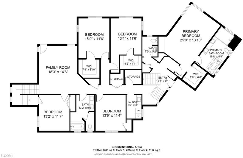 - Double Sinks, Primary - Stall Shower(s), Tub in Primary Bedroom