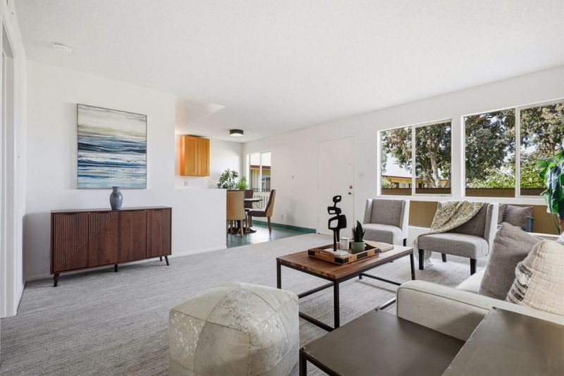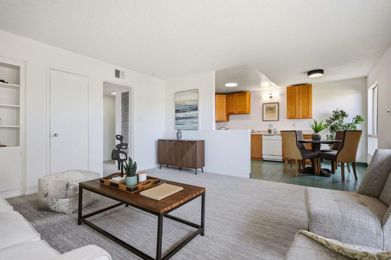 Why rent when you can own?! This top floor unit offers a private entrance that opens directly to a large balcony, ideal for those who prefer outdoor entry over a shared hallway. The interior is bright and airy, with oversized windows in both the kitchen and living room. The eat-in kitchen and living area are adjacent to the balcony, extending the living space and maximizing natural light. The primary bedroom includes an en-suite bathroom with a shower stall, while the hallway bathroom has a full tub. The unit was recently updated with fresh paint, new carpeting, and a new stove and refrigerator. Additional features of this home include a dedicated covered parking spot and ample street parking. Two spacious storage lockers are conveniently located next to the parking space. This property offers a functional living environment in a well-connected Peninsula neighborhood, providing close proximity to major retail hubs like Park Place Plaza and primary transit corridors, including Highways 101 and 92. This is a pet friendly community, 1 assigned parking spot, and community laundry room.