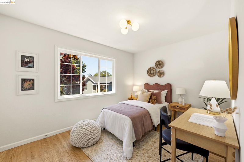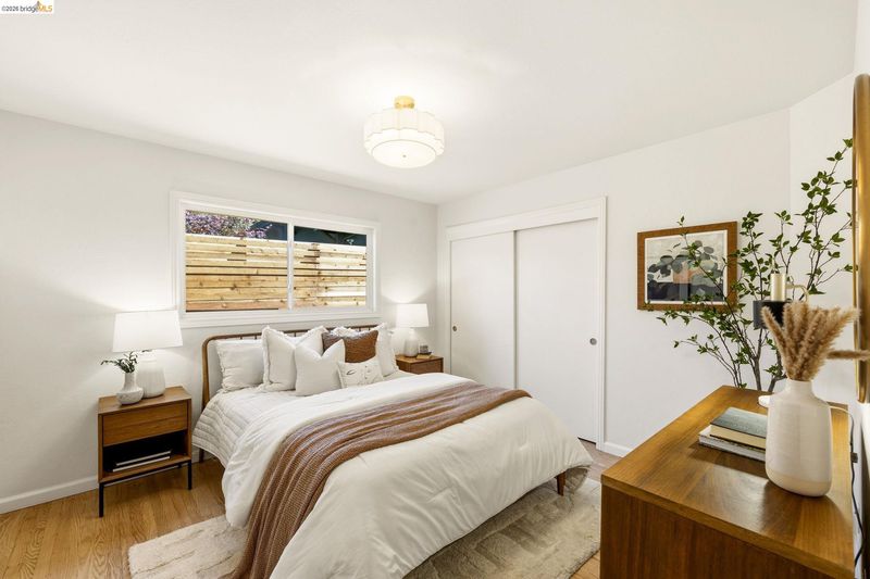 Tucked along one of the neighborhood's coveted streets, this single-level ranch offers serene, Shangri-La seclusion while remaining just steps from one of Oakland's most celebrated urban corridors. Michelin-starred dining, a curated wine bar, Fenton's Creamery, Piedmont Grocery, & the iconic Piedmont Theatre are all mere moments away: a Walker's Paradise with a 94 WalkScore (WalkScore.com) to prove it. The home's single-level floor plan is both generous & gracious, w/light-filled living & dining rooms that flow effortlessly and reward easy, elegant living. A wood-burning fireplace anchors the living room, while custom lighting throughout lends a refined, curated atmosphere. The recently renovated kitchen feat. quartz countertops, a center island, earth-tone cabinetry, stainless appliances, & striking blue glaze horizontal tile backsplash. Direct access from the kitchen leads to a private rear patio & lush yard, ideal for alfresco entertaining or quiet evening retreats. Three well-proportioned bedrooms incl. a primary suite w/a stylishly appointed en suite bath. The hall bathroom is equally impressive, feat. a vertical tile shower surround & bespoke finishes. Seller-owned solar panels, hallway laundry room, an EV charger, 2-car attached garage w/direct interior access & storage.