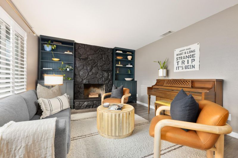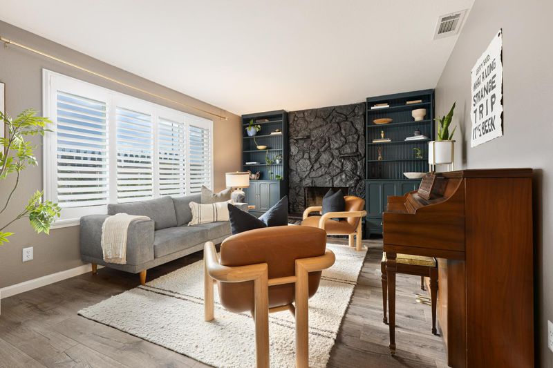 Welcome to this inviting 3-bedroom home tucked in a court, offering a spacious lot and an in-ground liner pool that sets the stage for year-round enjoyment. The backyard is an entertainer's space with a large gazebo, patio areas, and plenty of room to expand or customize. Fresh exterior paint and dual pane windows provide a clean, updated presence from first glance. Inside, warm, and thoughtfully styled spaces unfold. The front living room features plantation shutters, a stone wood-burning fireplace, and built-in shelving, creating a cozy yet modern atmosphere filled with natural light. The kitchen offers wood cabinetry, ample counter space, stainless steel appliances, and an island with an electric range, all opening into a comfortable family room that serves as another inviting area to relax or entertain. The dining room is well suited for gatherings of all sizes. The primary bedroom offers a peaceful retreat with an en suite bathroom, ceiling fan, and soft natural light. Two additional bedrooms provide flexibility for guests, office use, or hobbies. A guest bathroom with exterior access is especially convenient for pool days. With a generous lot, multiple indoor living spaces, and a backyard designed for enjoyment, this home is warm, functional, and full of potential.