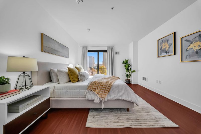 Welcome to a stylish corner condo in the heart of Uptown Oakland, where modern upgrades meet exceptional convenience. This fully upgraded, two-bedroom, two-bathroom residence offers 1,183 square feet of open-plan living with high-end finishes throughout. Positioned on an upper floor, enjoy abundant natural light and sweeping city views that make your morning coffee feel like a scene from a movie also please enjoy the open community herb garden with water feature. The balcony is perfect is perfect for viewing with friends, and the included parking space adds value and ease for busy urban living. The primary bedroom features ample walk-in closet space and a full en suite bath, creating a welcome retreat after a long day. Located just steps from top tech offices like Pandora and WeWork and under a 10-minute walk to BART, this condo offers a rare lifestyle blend of work, culture, and entertainment. With Whole Foods, art schools, cafes, and Frank Ogawa Plaza nearby, you'll never run out of inspiration or good coffee. Bonus: Internet is included, so you can stream, browse, or Zoom without a hiccup. Whether you're an owner-occupant or investor, the potential for rental income is strong in this dynamic and growing neighborhood. This is city living with a spark and a parking space.