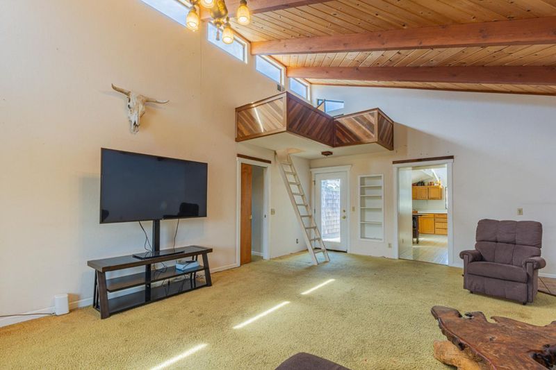 Is there a 4-bed single-family home in Monterey with flexible living space and dual access? 33 Portola Ave offers a unique opportunity on a 4,000 sq ft street-to-street lot in the Monterey sunbelt, featuring two distinct living areas with separate entrances, ideal for extended living, guests, or flexible use. This 1,636 sq ft home includes 4 bedrooms and 2 baths, originally built in 1940 and expanded in the 80s, with a layout designed for versatility. Soaring open beamed ceilings add volume and natural light, while the large 768 sq ft garage includes partitioned areas suited for storage, workspace, or creative uses. With driveway access from both Portola Ave and Helvic Ave, the property offers convenience and flexibility. The home is ready for your updates, creating a strong value-add opportunity in a sought-after location near Del Monte Beach, Fisherman's Warf, Downtown Monterey, and Starbucks. Bring your vision and explore the potential of this 4-bed home in Monterey.