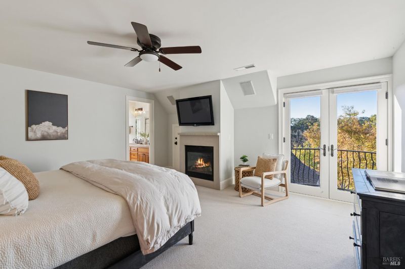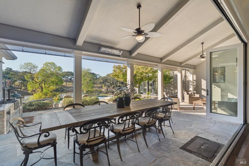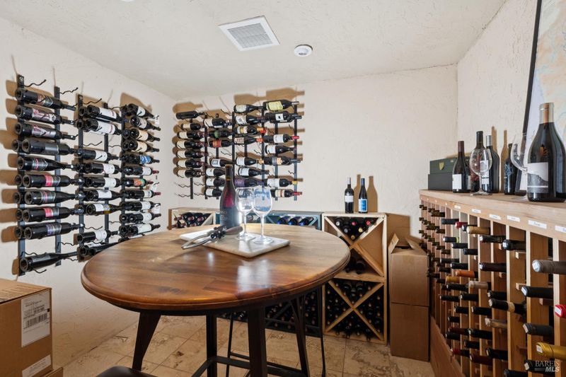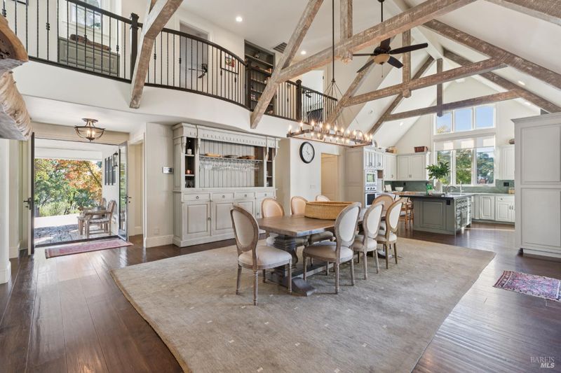 Behind gates and oriented to lake and vineyard vistas, this elegant estate pairs resort-style amenities with space to cultivate your own Wine Country lifestyle - think gardens, orchard, and room for animals - minutes from acclaimed wineries, dining, and luxury amenities. Inside, a chef's kitchen with large island and dual pantries opens to a vaulted dining room with fireplace. The living room's open-beam ceilings and dramatic fireplace frame wall - length accordion doors that blend indoors and out. Down a spiral stair, a wine cellar adds true Wine Country character. On the main floor, the primary wing offers a suite with fireplace, walk-in closet room, steam shower, soaking tub, plus a sunroom ideal as a gym or studio stepping out to the pool and hot tub. A main-floor office with full bath adds flexibility. Upstairs, two ensuite bedrooms take in hillside and vineyard views. Outdoors, enjoy a built-in BBQ kitchen, covered dining patio, bocce court, pool, hot tub, raised garden beds, and substantial orchard. Equestrian amenities include run-in shed, pasture, tack room with electricity and water, and access to nearby riding trails. Roughly 1hr from the Golden Gate, & 10min to Healdsburg square & the airport, your private Wine Country retreat offers every comfort close at hand.