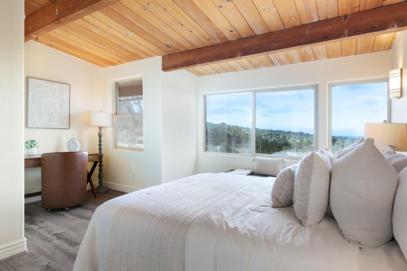 This 2-bedroom, 1.5-bath, two-story condominium offers approximately 954 sqft of well-designed living space, highlighted by broad, open ocean views that feel expansive without trying too hard. From the living room and upstairs bedroom, the Pacific Ocean is always in view while the 700+ sqft Bay View deck delivers a generous, open-air perch that's perfect for sunsets, gatherings, or simply watching the horizon do its thing. Inside, tongue-and-groove wood ceilings, all-new vinyl flooring throughout, multiple windows, and a freshly painted interior create a light, warm, coastal feel that's relaxed yet refined. Everyday conveniences are thoughtfully covered with indoor laundry, on-site storage, and two covered parking spaces, keeping life easy and clutter-free. The location seals the deal. Whole Foods and Elroy's Fine Foods are within walking distance, and beaches, scenic trails, dining, and shopping are just minutes away. Whether you're looking for a weekend escape or a full-time coastal home, this is a place where the views feel substantial, the lifestyle feels effortless, and every day comes with a little extra wow!