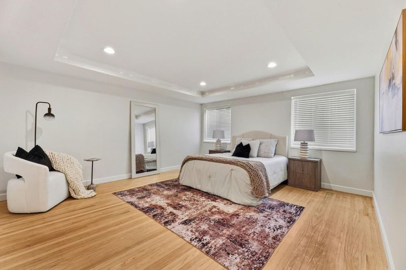 Set on a peaceful, tree-lined cul-de-sac in sought-after Crocker Highlands, this inviting mid-century home blends timeless character with thoughtful modern updates. The bright living room welcomes you with rich refinished hardwood floors and a classic wood-burning fireplace, creating a warm and comfortable gathering space. Beyond the dining area, the kitchen enjoys a sense of privacy and calm, overlooking mature trees and stunning sunset views. The main level features a spacious primary suite, a secondary bedroom and full bath, and generous closet storage enhanced with custom Elfa systems. The lower level offers exceptional flexibility with a second en-suite bedroom, an additional bedroom and bath, a family room, and a full kitchen opening to a large deck, ideal for entertaining, extended family, or guests. Upgrades include refinished hardwood floors, Elfa closet systems, newer roof, furnace, and freshly painted interior, foundation improvements, an updated deck, and a concrete slab. The newly sodded front yard with irrigation adds fresh curb appeal, while the unfinished basement and two-car garage with custom cabinetry provide abundant storage. Conveniently located near the shops and dining of Park Boulevard, Lakeshore, and Grand Avenue.