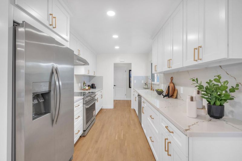 Fall in love with this beautifully refreshed classic ranch style home in highly desirable Los Altos, where a vibrant small town spirit thrives in the heart of Silicon Valley. This peaceful sanctuary offers 4 bedrooms, 2 baths, an additional water closet, and sits on an almost quarter acre lot surrounded by tall, mature trees that create a sense of privacy and serenity. Inside, the home shines with a fully reimagined kitchen featuring new cabinetry, countertops, and appliances. Both bathrooms have been tastefully and thoroughly updated. Additional enhancements include fresh interior and exterior paint, new doors and closets, updated lighting throughout, stunning refinished hardwood floors, and a brand new roof. Designed for ease and elevated living, the home offers spacious rooms, abundant natural light, and a seamless indoor outdoor flow ideal for relaxation, connection, and inspired everyday moments. Located near excellent Los Altos schools, with the elementary school at the end of the street, and just minutes from shopping, dining, parks, trails, major tech companies, and commuter routes, it brings both convenience and tranquility into perfect harmony. Come experience the energy of this space and see if it aligns with the lifestyle you're ready to create.
