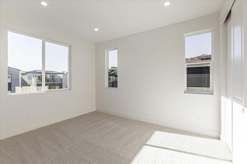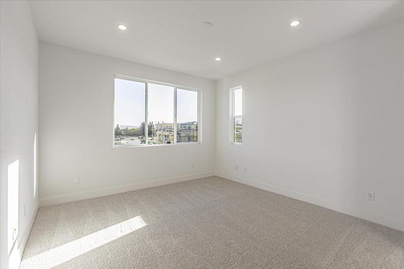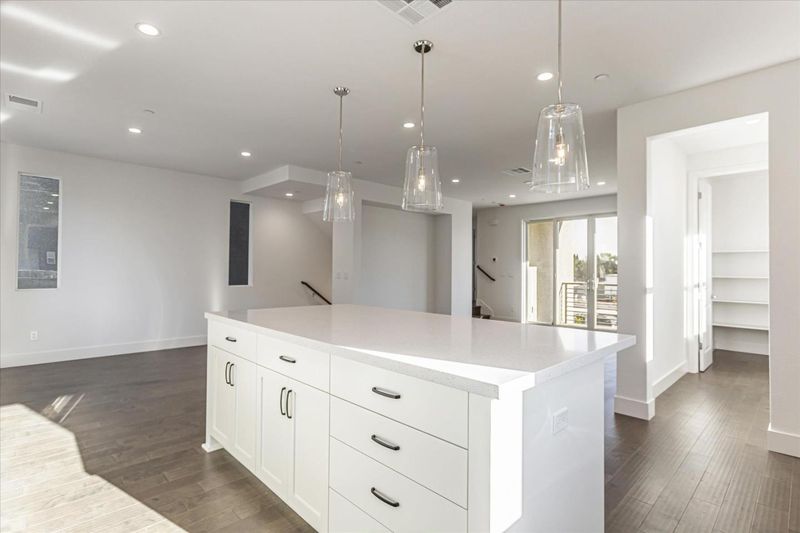 Plan 1 Rows features 3 bedrooms plus a den and 3.5 bathrooms, along with a side-by-side garage. The front door opens directly to a quaint community park. The open-concept design includes a spacious kitchen with a large center island, a welcoming dining area, and a ground-floor den ideal for a home office or guest room. A large outdoor deck offers the perfect space for relaxing or enjoying meals outdoors. Interior highlights include sleek paint-grade shaker cabinetry and modern 4" recessed lighting throughout, engineered wood flooring on main living area and front entrance. Solar panels are available for lease or purchase. Home is single-family detached, mapped as condominium. City Village, a new community by award-winning homebuilder SummerHill Homes, offers 404 thoughtfully crafted homes in the heart of San Ramon. Residents will enjoy a 2-acre public park, scenic walking and biking trails, peaceful sitting areas, and a shared BBQ zone. Located near the City Walk district and just a mile from vibrant City Center retail shops, restaurants, Iron Horse Trail, great schools, public transit, and top employers. Renderings may vary.