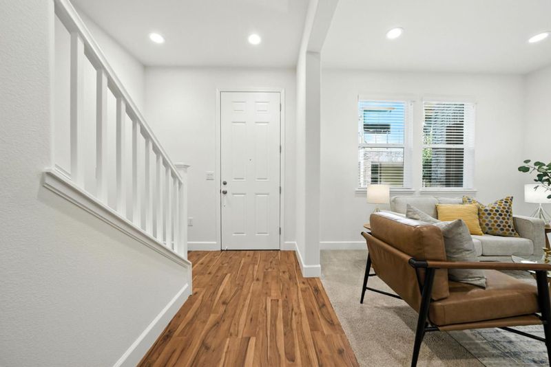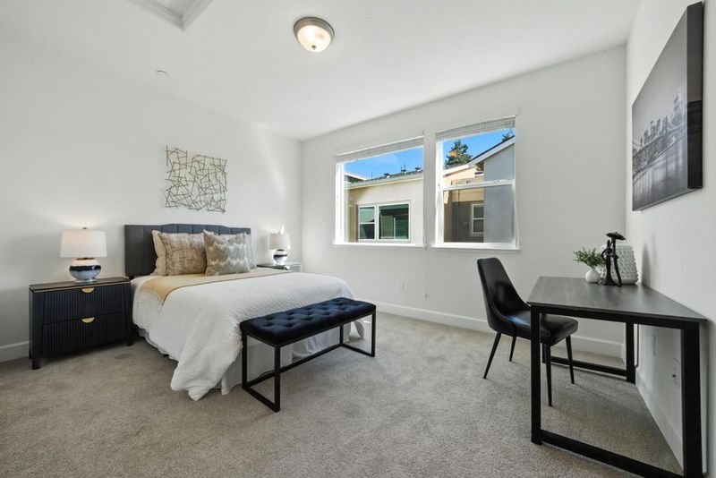 BACK ON THE MARKET!!!! Welcome to this stylish, move-in ready tri-level townhome built in 2016 with extensive upgrades and abundant natural light throughout. The entry level opens to an oversized flex room with a half bath, perfect as an additional bedroom, open office, gym, or media space. Upstairs, the main level offers a spacious open-concept living and dining area that flows seamlessly into a beautifully maintained kitchen featuring stainless steel appliances, granite counters, an island with bar seating, and extensive cabinetry. This floor also includes a bedroom, full bathroom, laundry room, and a private balcony for easy indoor-outdoor living. On the top floor, the sunny primary suite boasts a walk-in closet and spa-inspired ensuite with dual vanities. An additional bedroom and bath complete the level, offering versatility for family, guests, or work-from-home needs. Set in a quiet, well-kept community just minutes from major tech campuses, vibrant Downtown Sunnyvale, Light Rail, Hwy 85, and 101, this home combines modern design, flexible living spaces, and an unbeatable location.