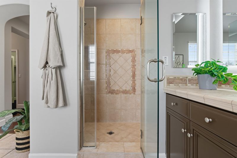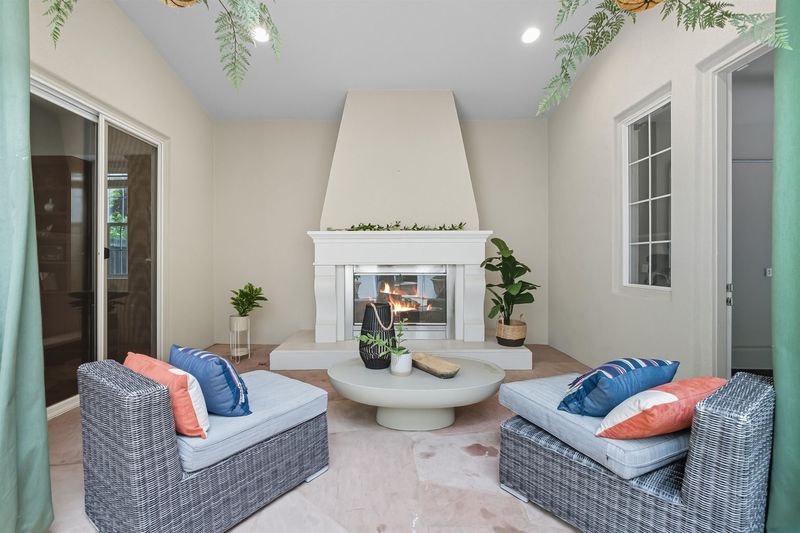 This exceptional residence showcases a grand open-concept layout designed for both comfort and sophistication, enhanced by an owned solar system and separate Nest thermostats for the upper and lower levels, offering energy efficiency and long-term value. Elegant hardwood floors and refined finishes flow seamlessly throughout the home. All five generously sized bedrooms feature en-suite baths and are complemented by a versatile office/tech room. The gourmet kitchen is beautifully appointed with quartz countertops, a classic subway tile backsplash, an oversized island with bar seating, built-in refrigerator, gas cooktop, pantry, and a casual dining area. The inviting living space is anchored by a gas-operated fireplace, creating a warm and welcoming atmosphere. Outdoors, the home transforms into a private resort, featuring a modern pool with cascading waterfalls, poolside lounging areas, a courtyard accented by a custom fountain and planters, flagstone hardscape, and a semi-indoor lounge with its own fireplace which ideal for year-round enjoyment. Additional highlights include a dedicated laundry room, a three-car garage, and a luxurious primary suite offering a private retreat/exercise room, a spa-inspired bathroom, and custom closets and cabinetry. Situated within a top-rated sc
