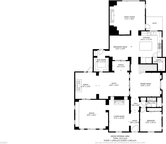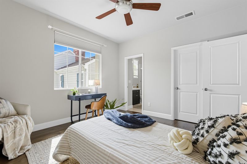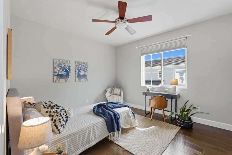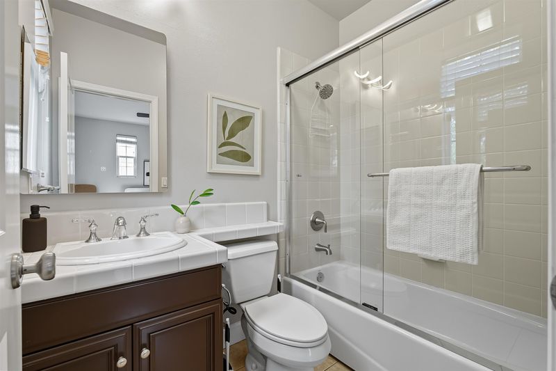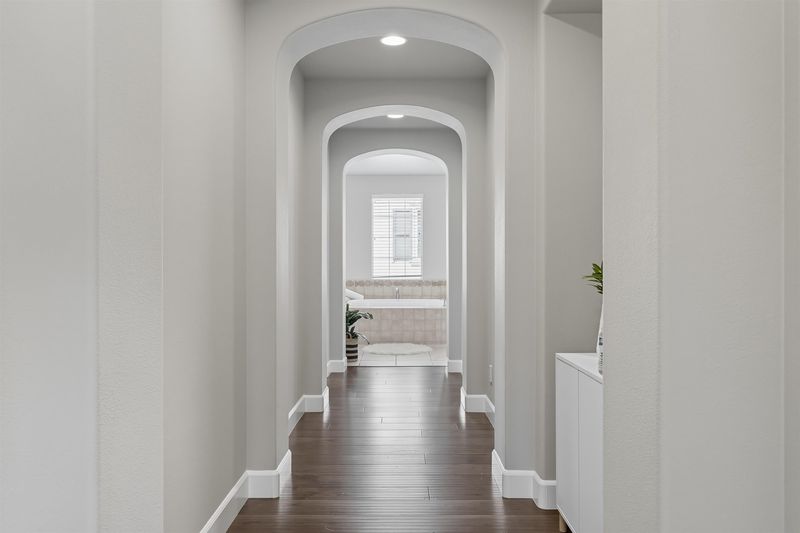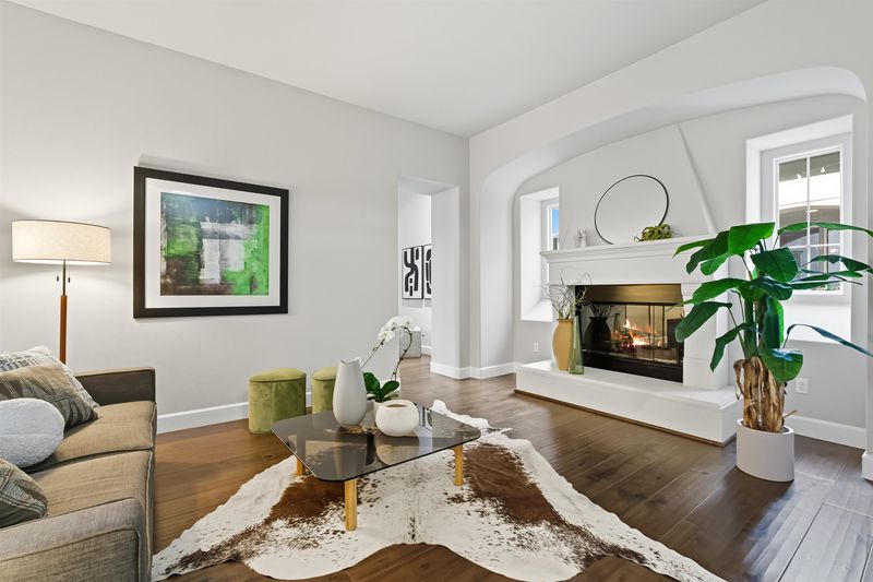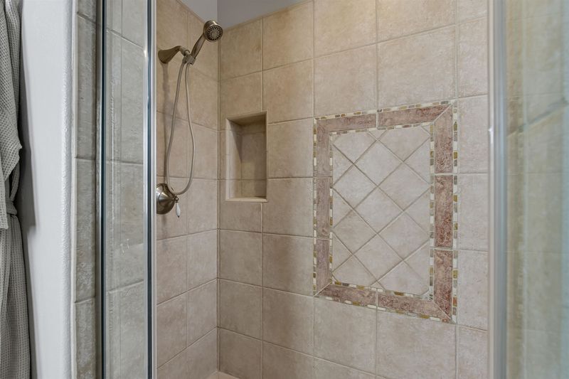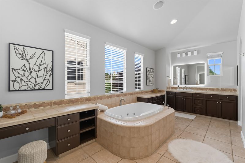 This exceptional residence showcases a grand open-concept layout designed for both comfort and sophistication, enhanced by an owned solar system and separate Nest thermostats for the upper and lower levels, offering energy efficiency and long-term value. Elegant hardwood floors and refined finishes flow seamlessly throughout the home. All five generously sized bedrooms feature en-suite baths and are complemented by a versatile office/tech room. The gourmet kitchen is beautifully appointed with quartz countertops, a classic subway tile backsplash, an oversized island with bar seating, built-in refrigerator, gas cooktop, pantry, and a casual dining area. The inviting living space is anchored by a gas-operated fireplace, creating a warm and welcoming atmosphere. Outdoors, the home transforms into a private resort, featuring a modern pool with cascading waterfalls, poolside lounging areas, a courtyard accented by a custom fountain and planters, flagstone hardscape, and a semi-indoor lounge with its own fireplace