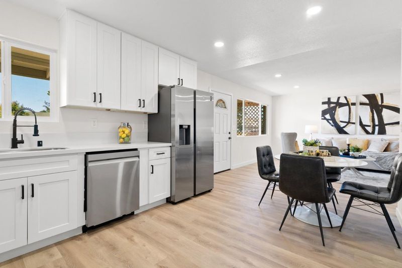Newly refreshed 3 bedroom 2 bath home on a serene cul-de-sac on a HUGE sunny 8058 sq ft lot! This gorgeous single level home has new updates throughout! Enter into an open living/dining/ kitchen area with gleaming new flooring throughout! The chefs kitchen features new shaker style cabinetry and white quartz counters, new stainless stove/oven/micro dishwasher and a stainless fridge! The primary bedroom is spacious and has 2 closets for storage, a new ensuite bathroom with stylish wood vanity, slate black tile and 5 ft shower with designer tile! Two other good sized bedrooms. Refurbished hall bath with new shaker vanity and new designer inspired tub/shower! Your lighted back patio becomes your gathering spot overlooking the generous yard to host summer barbecues. The 2-car garage is finished and has epoxy floors + RV/trailer parking! More updates include New doors,dual pane windows, light/plumbing fixtures, new int and ext paint, new dual zone heater, new fencing, + much more!!! Located near Pinto Lake in the peaceful Amesti/Green Valley area, you're close enough to reach town in minutes, yet tucked away where hillside views provide a peaceful backdrop. This home offers room to add an ADU and grow in a beautiful setting! Super clean!