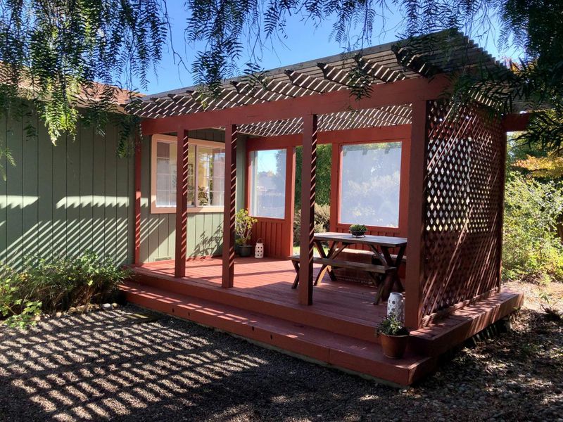 You'll love coming home to this sprawling single level home with its flowing floorplan. Spanning 1,980 sq ft, this residence offers spacious, inviting living spaces perfect for family fun and entertaining. The kitchen is equipped with newer appliances, ample cabinetry and counterspace making it a culinary haven for any home chef. The property boasts a Separate Family Room and a large dining area complemented by a breakfast bar, providing ample space for family gatherings and entertaining guests. The flooring is a combination of carpet and tile, adding warmth and style throughout the home. Cozy up by the fireplace during cooler evenings, creating a perfect ambiance for relaxation. The sunroom offers another space to create or meditate. With a lot size of over 12,000 square feet you've got plenty of room for outdoor living, gardening or perhaps an ADU. The flag lot provides peaceful privacy.