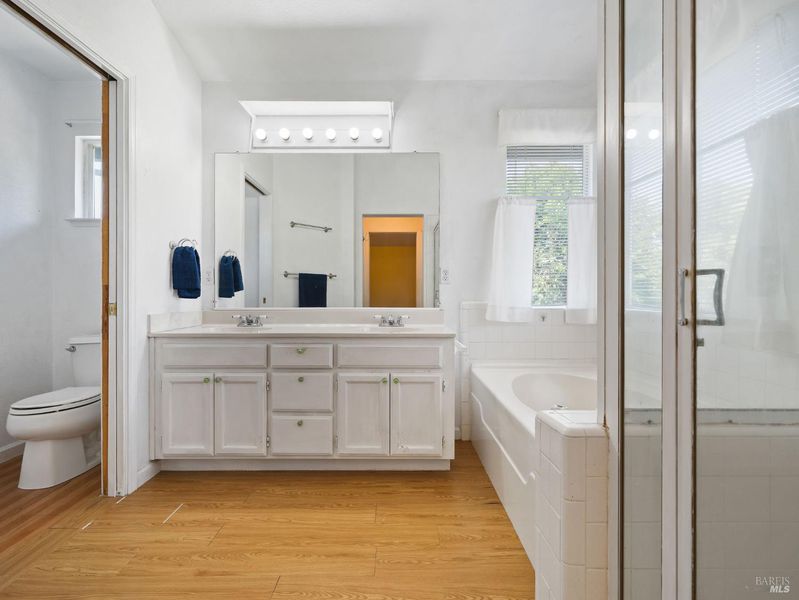 - Double Sinks, Shower Stall(s), Soaking Tub