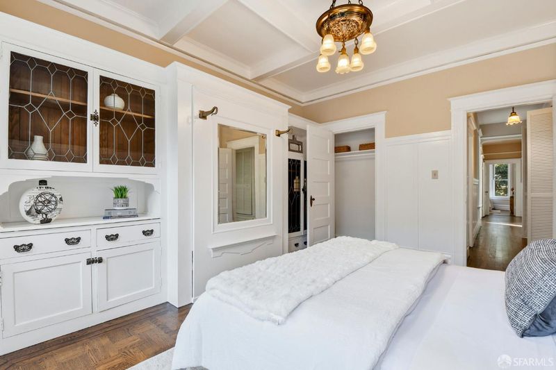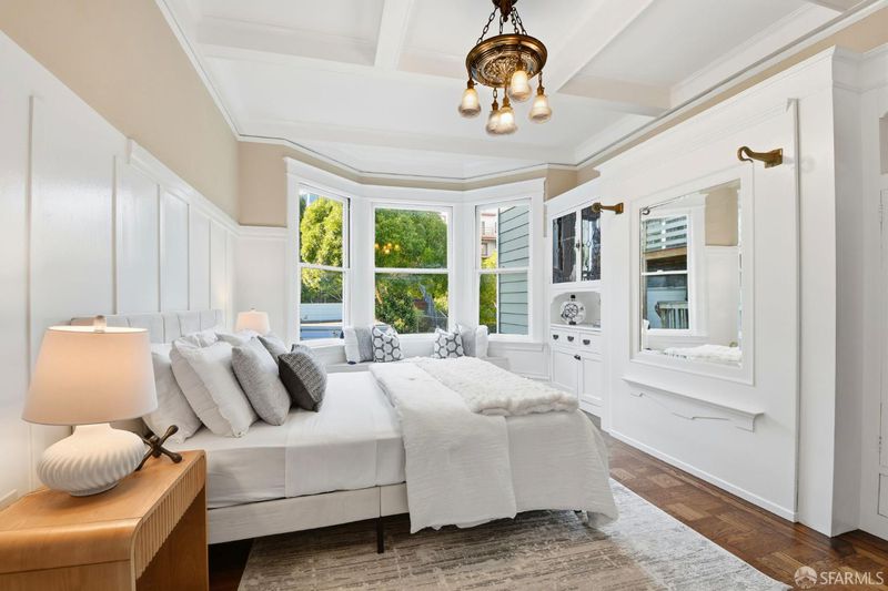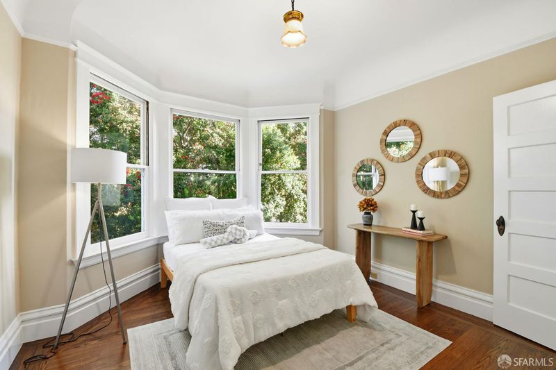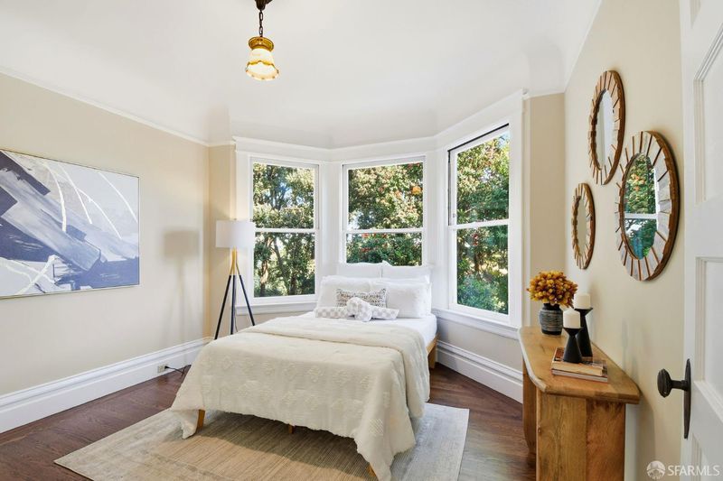 Situated in the highly desirable Anza Vista neighborhood, this is an amazing opportunity to own a spacious full-floor, upper unit, 2- or 3-bedroom condo in a charming Edwardian 2-unit building. Featuring high ceilings, elegant Edwardian details including crown molding and ceiling medallions, and abundant character throughout. The flexible floor plan allows for either 2 bedrooms with a formal dining room or 3 bedrooms with a large eat-in kitchen. The generously sized living room boasts an original decorative fireplace, while the bedrooms offer ample space and comfort. One full bath and recently refinished hardwood floors throughout add to the home's appeal. A private side-by-side washer/dryer is conveniently located in a separate closet, and one-car independent garage parking is included, entry from the rear on St. Josephs Street. Large storage room down. Solar panels included for this unit reducing utility bills considerably. Perfectly located minutes from Divisadero and Fillmore Streets, with shops, restaurants, and conveniences like Trader Joe's and Target nearby. Just a few blocks to Kaiser Permanente and close to everything this vibrant neighborhood has to offer!