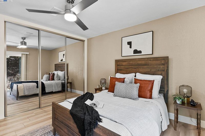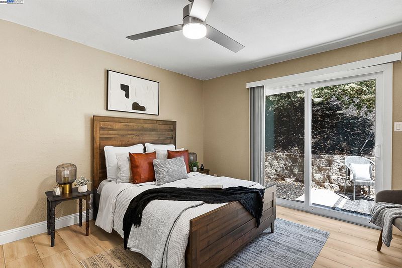 Welcome to this spacious and beautifully updated 2-bedroom, 2-bath townhouse tucked away in a quiet cul-de-sac, surrounded by mature trees and lush, park-like grounds that create a truly serene setting. The home features an open floor plan with vaulted ceilings, exposed beams, and abundant natural light. Enjoy modern upgrades including stainless steel appliances, new cabinets, and updated flooring throughout. Step out onto a private deck from the living room—perfect for relaxing or entertaining. Additional highlights include a newer Heating system and water heater, a 2-car garage, and access to resort-style community amenities including a pool and clubhouse. Conveniently located near major transportation, shopping, and freeway access, this home offers a rare blend of comfort, style, and a uniquely tranquil atmosphere.