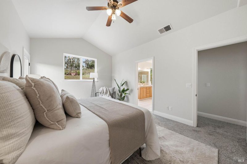 Perched high on a quiet hilltop at 19429 Moon Ridge in Hidden Valley Lake, this 4-bedroom, 2.5-bath tri-level home offers peace, privacy, and the kind of views that make you stop and take it all in. Fresh interior paint and new flooring throughout give the home a clean, modern feel and make it truly move-in ready. The heart of the home is the open living room, where a wall of windows pulls in sweeping views of Hidden Valley and the surrounding mountains. Sunsets here are something special the kind you'll find yourself watching night after night, whether you're winding down after work or hosting friends on the weekend. The tri-level layout gives this home a unique sense of separation and flow. The primary suite sits on its own private upper level, creating a quiet retreat that feels tucked away from the rest of the house. It's the perfect place to unplug at the end of the day and enjoy the calm that comes with hillside living. Located inside the gated Hidden Valley Lake community, this home offers more than just a great house it offers a lifestyle. Enjoy gated security, a community pool, clubhouse, and a nearby golf course, all while being surrounded by nature and wide-open skies. The setting is peaceful and private, yet still convenient for commuting toward Napa or Sonoma County. If you've been looking for an affordable Lake County home that delivers views, privacy, and a true sense of escape without feeling isolated this one checks all the boxes. Moon Ridge is the kind of place that doesn't just feel like a house, but a place to truly come home to.