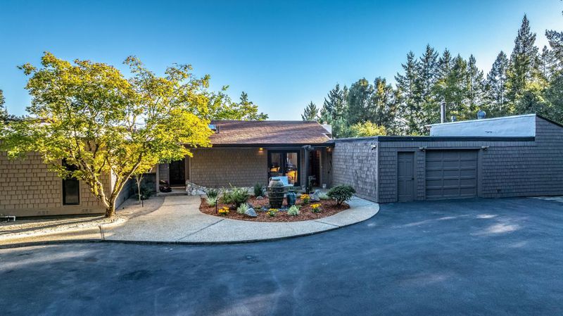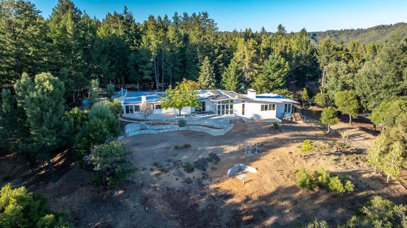 Mid-Century Modern Gem with 5-Bedrooms, 3-Full Bathrooms, 2-Half Bathrooms, 3,860 Sq Ft, situated on 2.9 acres of mostly flat usable land with full sun all day and spectacular ocean views. The main house offers 3-Bedrooms, 2-Full Bathrooms, and 2 Half Bathrooms. A true Mid-Century Modern with clean lines, seamless indoor-outdoor living with expansive windows, high open beam ceilings, slate floors, sunken living room with 2-way stone fireplace, built-in couches, hidden wet bar and workspace, Large kitchen w/newer appliances, laundry room and a serene primary retreat. The 2 additional bedrooms have their own private wing with a sitting area and full bathroom. The attached ADU has 2-bedrooms, 1-bathroom, private entrance, full kitchen, living room with slider to back patio. The ADU is perfect as a private guest wing, multi-generational living, or to rent out. Solar panels and batteries are fully owned, 3 sheds and oversized garage for all your storage needs. This is a rare opportunity to own such a spacious property with stunning architectural features and breath-taking ocean views. Located next to Loma Prieta Winery. Visit Rancho Prieta today, before its gone.
