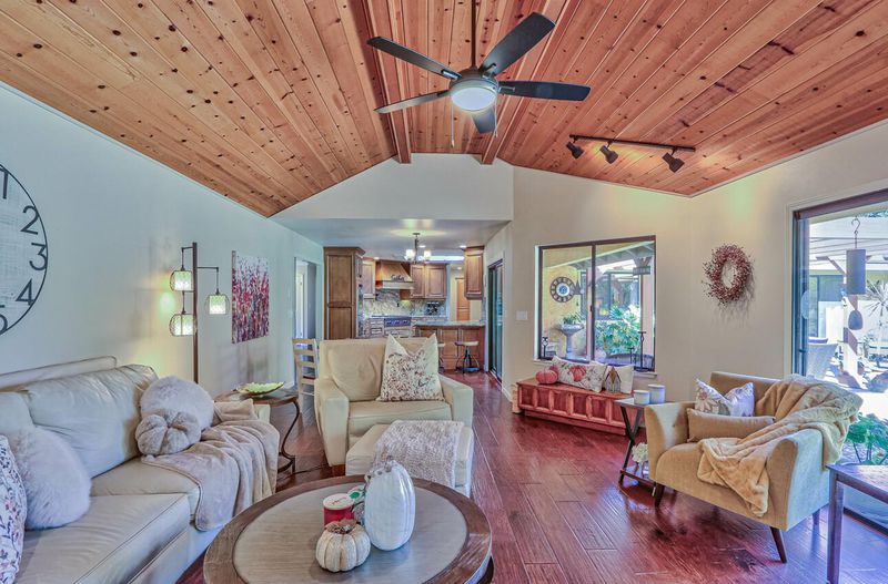Tucked behind the gates, in the much sought after enclave of Country Meadows Estates, sits this spacious and inviting home. Situated on a meticulously landscaped premium lot the house is currently undergoing installation of a brand-new, $100,000 Class A fire rated concrete tile roof. Lovingly maintained the home boasts an updated, remodeled kitchen, two remodeled bathrooms & a well thought out floor plan that offers quiet retreats & entertaining spaces throughout. The kitchen features Wolf appliances, a hammered copper sink, wine fridge, pantry cupboard & a skylight. The cozy family room has vaulted ceilings & a new stacked stone fireplace with a contemporary gas insert. Entertaining is a breeze with the elegant formal dining room & step-down living room that features a striking marble fireplace with traditional mantel. The primary bedroom features 2 closets, including a large walk-in, a spacious bathroom & sliding glass doors to the back patio. For outdoor gatherings, head to the back patio & lush lawn area, surrounded by mature flowering shrubs & raised veggie beds. Venture further and you will discover a hidden area with plenty of room for play structures, a garden shed or dog run. The 3-car garage has additional storage & there is ample guest parking. This is a Must-See Home!