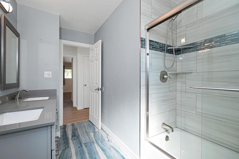 - Shower Over Tub, Solid Surface, Tile, Updated Baths, Double Vanity, Window