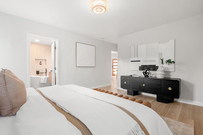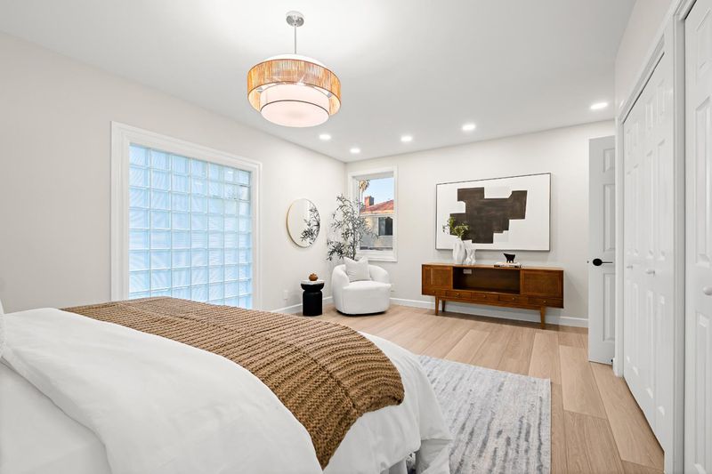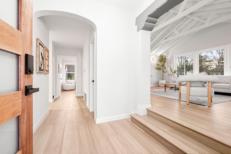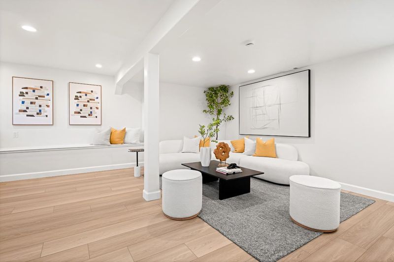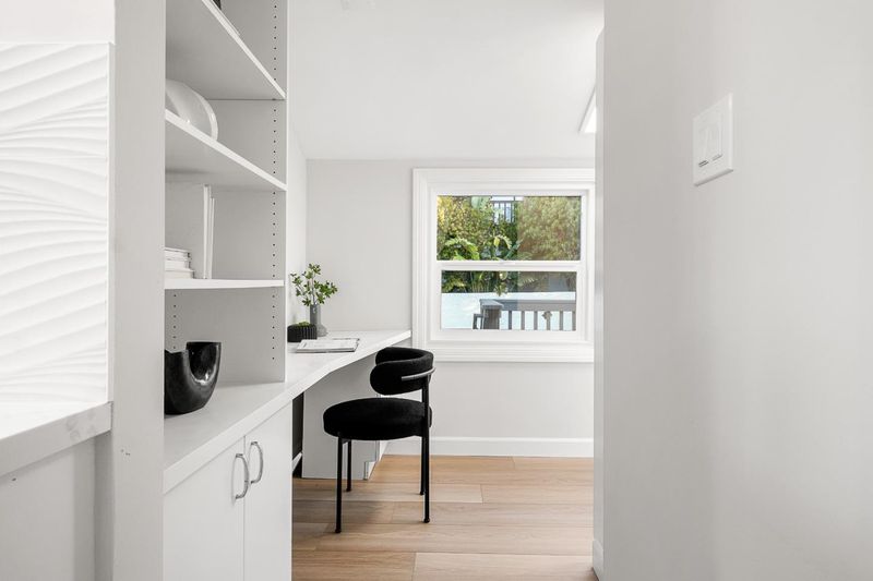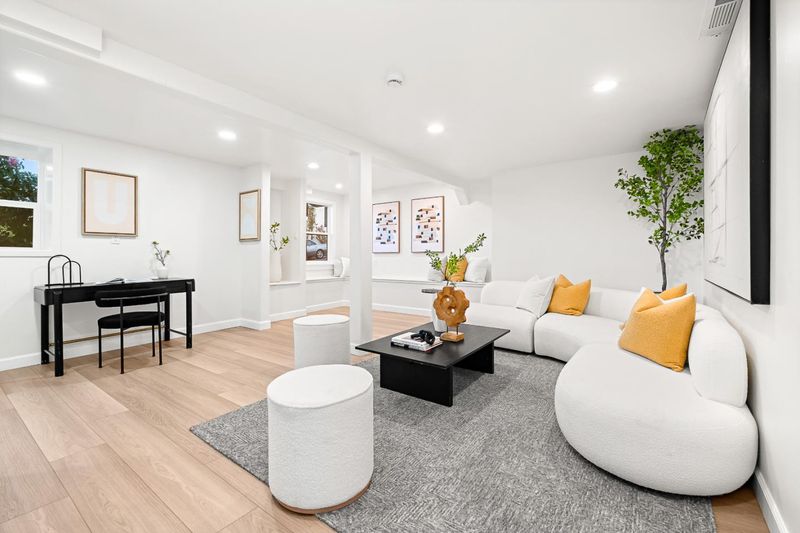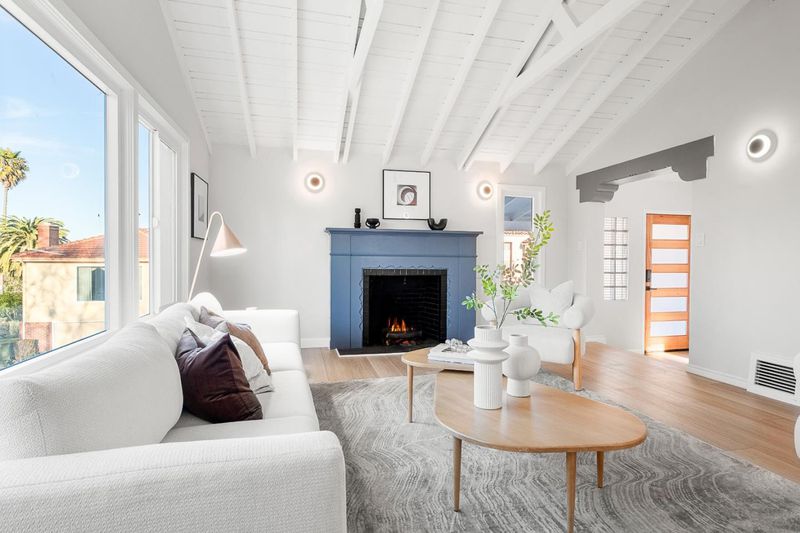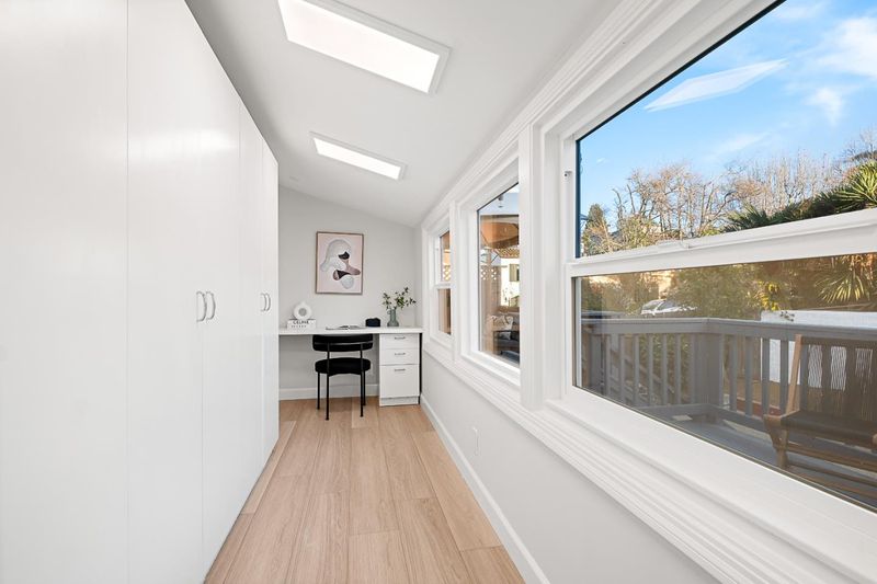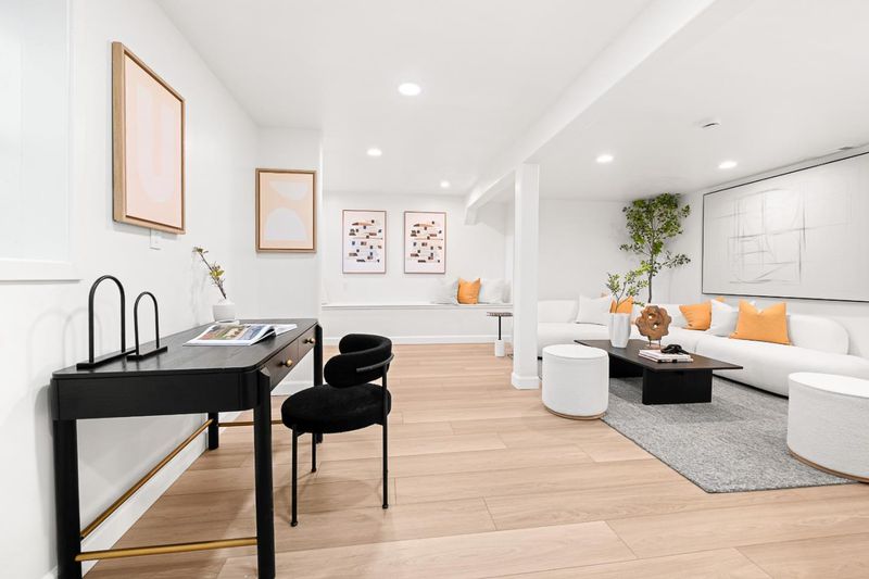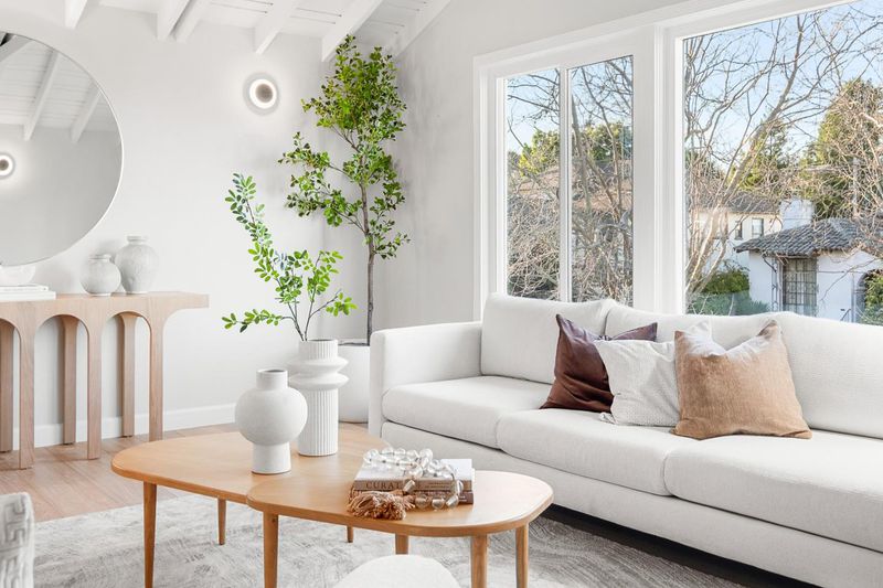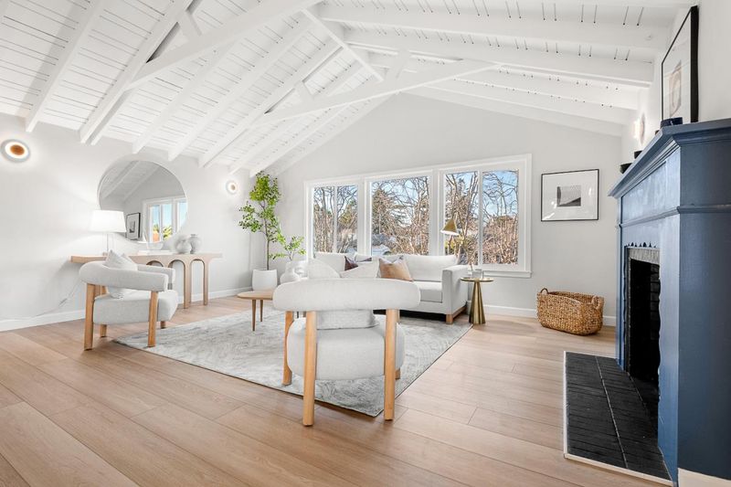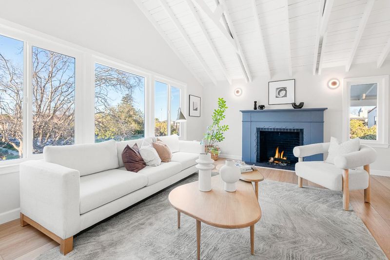 Turnkey and sun splashed, this Millbrae home delivers easy indoor outdoor living within walking distance to Millbrae downtown. A vaulted open beam living room welcomes you with leafy outlooks and a refined fireplace. The renovated kitchen dazzles with white cabinetry, quartz counters, sculptural backsplash, stainless appliances, matte black fixtures, and twin skylights. A cheerful breakfast nook opens to a large deck with canopy for effortless al fresco dining. A bright rear sunroom or office spans the windows. The bedroom wing features two updated baths; the spa like primary retreat has a freestanding soaking tub, dual vanity, and pebble floor glass shower. Downstairs, a generous bonus or family room adds space for work, play, or guests. Outside, enjoy a wide low maintenance yard with turf play area and multiple seating zones, plus a roomy garage. All recent work completed with city permits. This is the one.