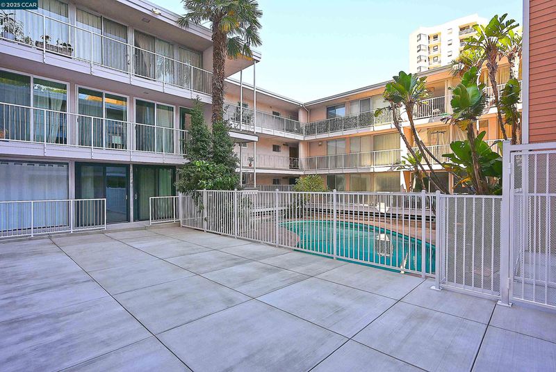 Great opportunity in Lakeview Terrace, a classic mid-century modern building! Lovely 2 bedroom condo on Lake Merritt featuring a beautiful view of water and the historic Camron-Stanford Mansion! This delightful end unit has an updated kitchen complete with a quartz countertop, stainless steel appliances, and abundant cabinet space. There is a large open-concept living room/dining room with bamboo floors. This unit is one of the few east-facing, with an all-glass front, directly facing Lake Merritt. There is updated lighting, ample closet space, and deeded 1-car parking. The building has a pool, an elevator, and a shared app-controlled laundry room. Conveniently located near dining, shopping, farmer's markets, downtown, the Oakland main library, and is across the street from the Lake Chalet restaurant. The condo is also close to the Lake Merritt BART station and has easy freeway access. This building has recently undergone a huge renovation to bring decks and balconies up to the new California requirements.