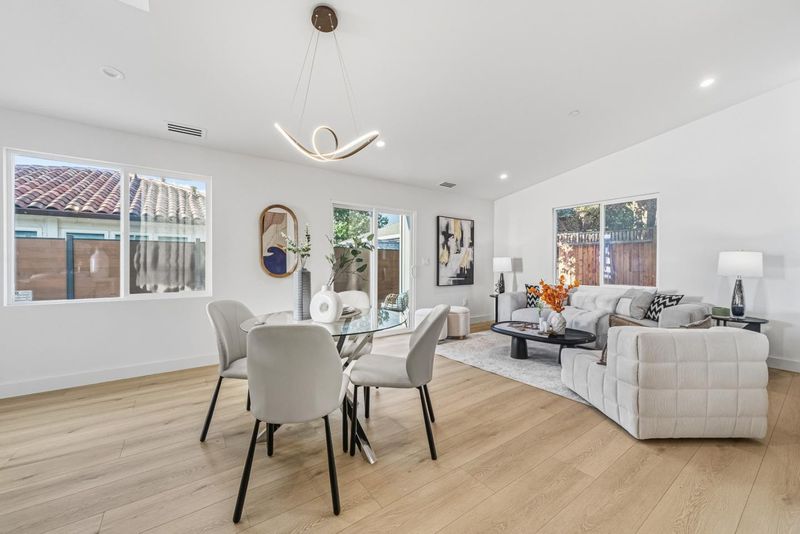 Welcome to this brand-new single-family home by AL Homes, offering quality craftsmanship and modern design in highly sought-after North San Jose. This single-level 3-bedroom, 2-bath residence provides an open and efficient layout with approximately 1,198 sq. ft. of living space. The vaulted ceiling and skylights in the light-filled great room create an airy and inviting atmosphere that seamlessly connects the living, dining, and kitchen areas. The kitchen features a spacious island and contemporary finishes, balancing everyday practicality with modern style. The primary suite includes a walk-in closet and private bath, while two additional bedrooms and a full hall bath offer flexibility for guests, family, or a home office. Conveniently located near schools, shopping, dining, and daily essentials, with easy access to Highways 680, 880, and 101, BART, and nearby Silicon Valley tech campuses. Enjoy the benefits of new construction with a builder-backed 10-year limited warranty for added peace of mind. Designed for low maintenance living in a quiet neighborhood setting and with no HOA dues.