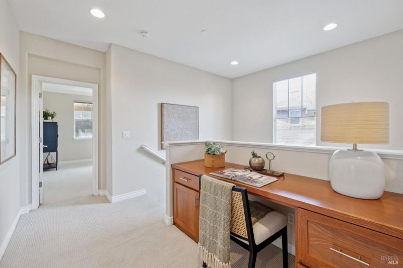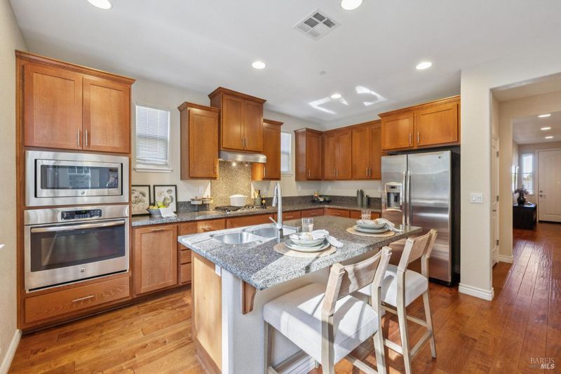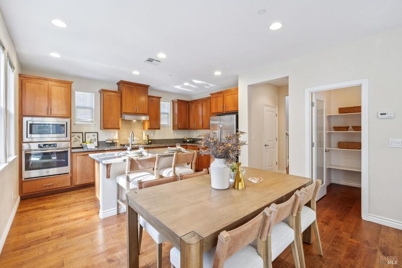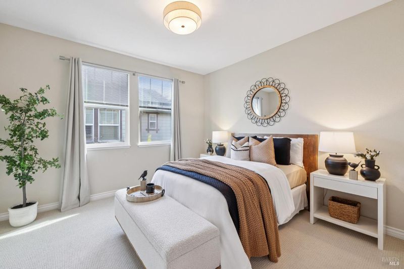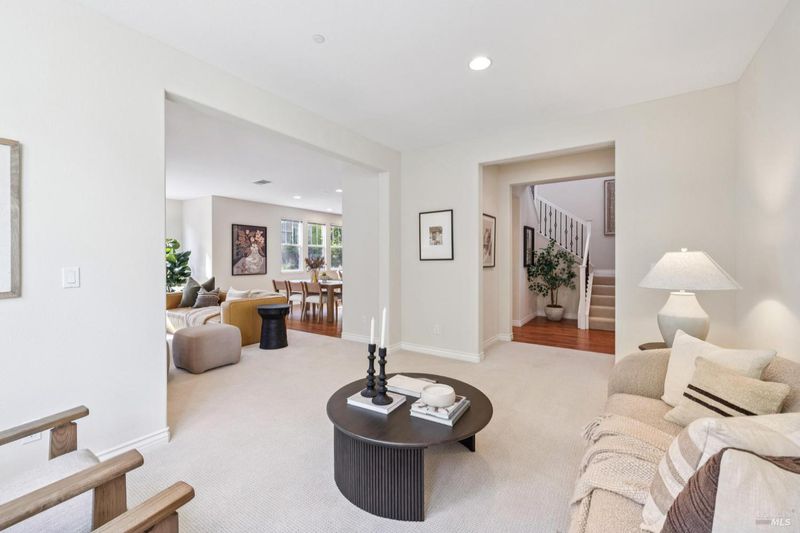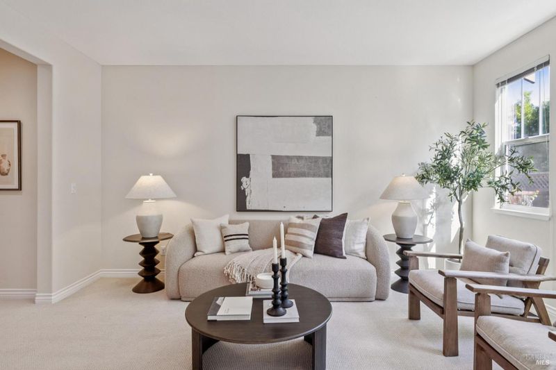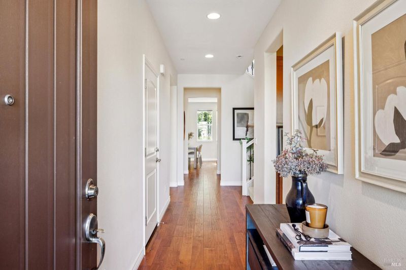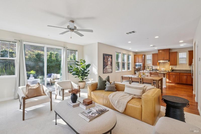 Built in 2014, this timeless classic designed home is ideally located about a mile from downtown Novato in a quiet, inviting neighborhood. High ceilings throughout the 4-bedroom, 3-bath residence create a warm and open feel. Constructed as a certified green-built home, it offers energy efficiency and quality finishes that have been thoughtfully maintained. The main level features a private bedroom and full bath, along with an open layout that seamlessly connects the spacious chef's kitchen, living and dining areas, and a separate second living room. Sliding doors open to a peaceful backyard bordering open space, complete with low-maintenance landscaping, attractive hardscaping, and a relaxing hot tub. Upstairs, the primary suite stands out with its large bathroom and walk-in closet. The second floor also includes two additional bedrooms, a third full bath, and a laundry room. A two-car garage completes the home.