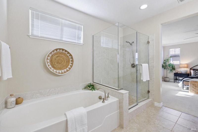 - Double Sinks, Shower Stall(s), Soaking Tub, Walk-In Closet