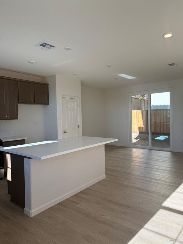 This welcoming, two-story home showcases an open floor plan with 9-ft. first-floor ceilings, luxury vinyl plank flooring and spacious living and dining areas. The modern kitchen boasts an island, quartz countertops, maple 42-in. upper cabinets, a Moen® faucet and Whirlpool® stainless steel appliances. Upstairs, a loft provides space for an exercise room or home office. Relax in the primary suite, which features a large walk-in closet and connecting bath that offers a dual-sink vanity, full shower, linen closet and enclosed water closet. Additional highlights include a solar energy system and upstairs laundry room.