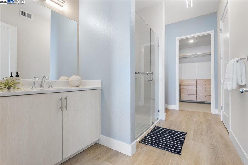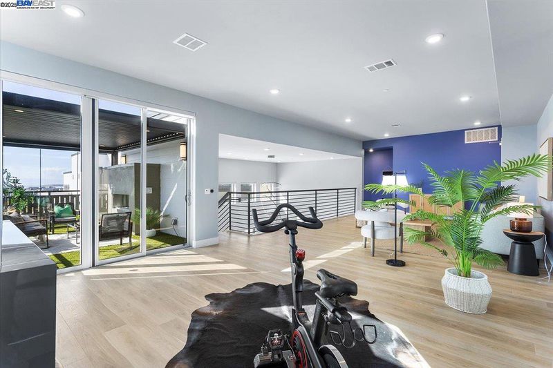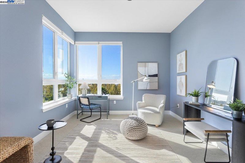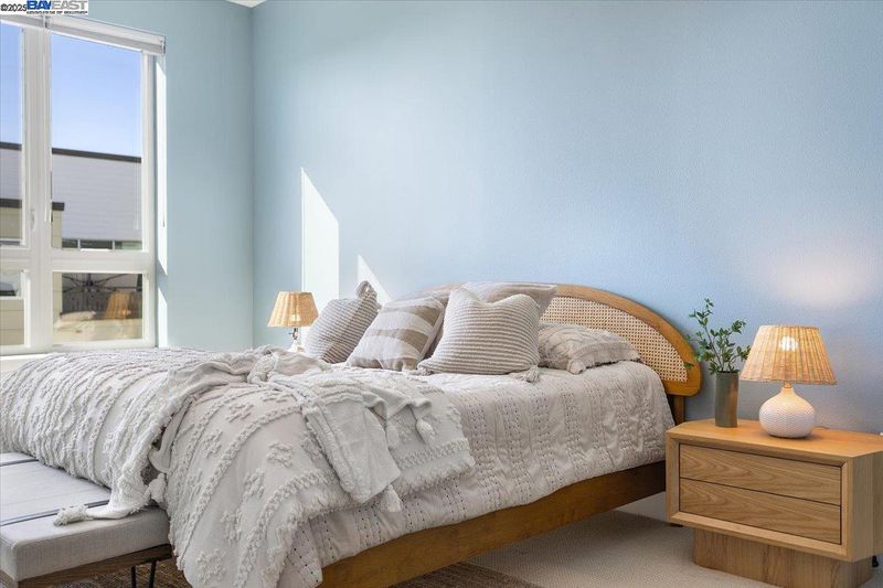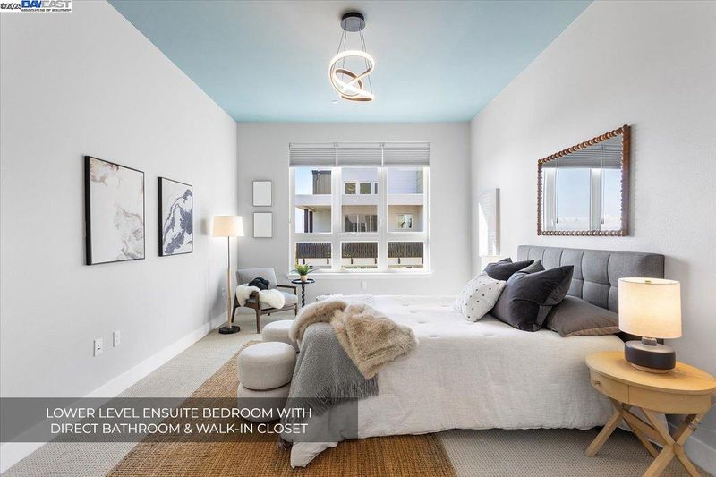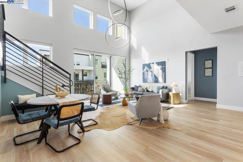 LUXURY PENTHOUSE WITH NO HOA FOR 6 MONTHS! A modern penthouse that defines elevated living in Fremont. This top-floor residence blends luxury design with thoughtful functionality throughout. The open-concept main level features a custom waterfall quartz island, premium JennAir appliances, soft-close designer cabinetry, and a built-in water filtration system. A floating chandelier anchors the open living space, while expansive sliding glass doors open to a covered deck for seamless indoor-outdoor living. Upstairs, a versatile loft leads to a private rooftop patio with a gas fireplace, perfect for entertaining or relaxing. Each floor offers its own ensuite bedroom for flexibility, comfort, and privacy, including a resort-style primary suite with dual vanities, a walk-in shower, and a spacious walk-in closet. This penthouse also includes two garage parking spaces with an EV outlet. Located in Fremont’s premier Metro Crossing community, just steps from Warm Springs BART, with access to resort-style amenities. This penthouse won’t last.