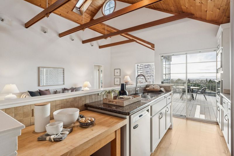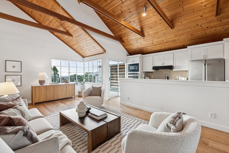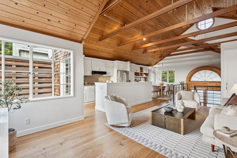 This classic brown-shingle bungalow seamlessly fuses vintage charm with modernism, offering light-filled spaces with stirring views of SF, Bay and Golden Gate Bridges. A vaulted natural wood ceiling tops the heart of the home, an open arrangement of minimalist kitchen, dining area, and living room. A deck off the kitchen offers space for dining and star-gazing. Two bedrooms and a bathroom share this level. The home's flow extends to the lower level, with a luxe primary suite, a den and spacious family room opening to decks overlooking the terraced garden. The backyard has been terraced to offer outdoor resting spaces, with a broad lower patio as the final reward. Partial basement with ample storage and attached garage. OPEN SUNDAY, JAN 11, from 2:00-4:30PM.
