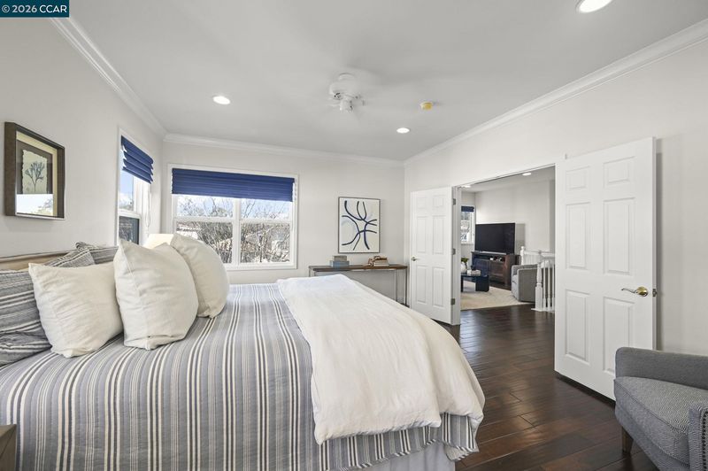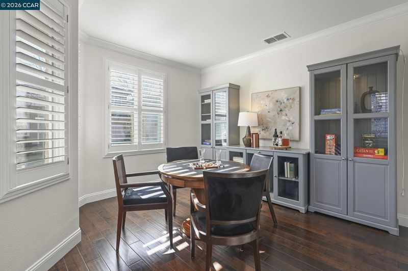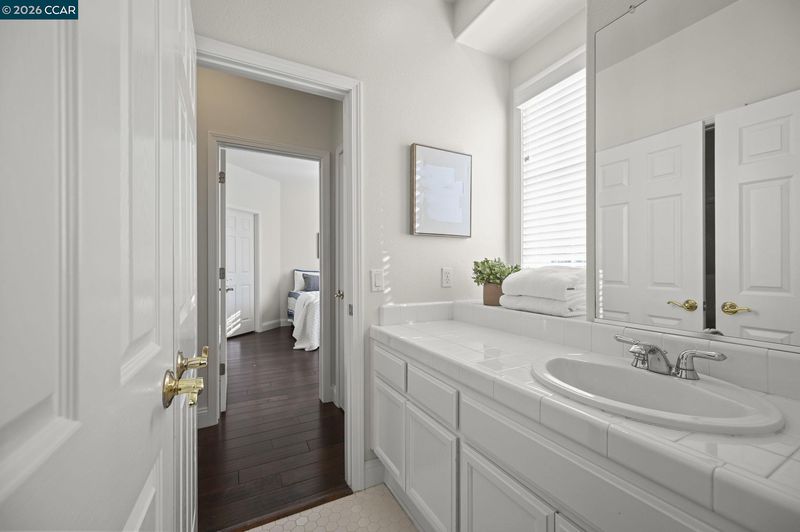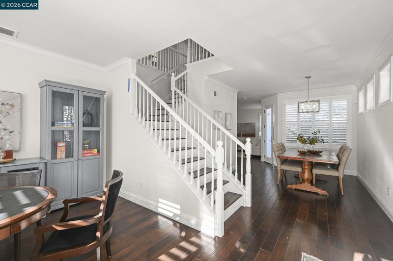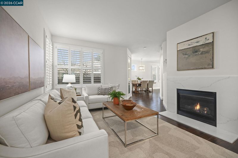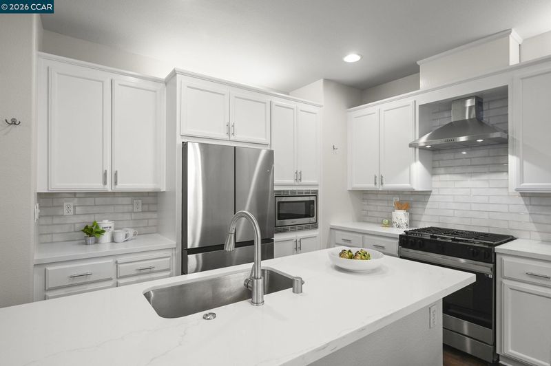 This beautifully appointed corner-lot residence in The Orchards offers 3 bedrooms plus a versatile loft (ideal as a 4th bedroom, office, or media space) and 2.5 baths, showcasing a spacious open-concept floor plan designed for both comfort and style. The HOA maintains the front yard landscaping, providing a polished exterior with low-maintenance living. The home features numerous upgrades throughout, including quartz kitchen countertops, stainless steel appliances, engineered hardwood floors, a refaced fireplace, vinyl shutters and a fresh coat of interior paint. The kitchen flows effortlessly into the family room, enhanced by a center island, engineered hardwood flooring, and refined finishes that create a warm yet sophisticated ambiance. The spacious primary suite serves as a true retreat, featuring dual vanities, a sunken soaking tub, a separate stall shower, and a generous walk-in closet. Ideally located near top-rated schools within the SRVUSD, this home also offers convenient access to freeways, shopping, and dining. Enjoy close proximity to the vibrant San Ramon City Center, with its upscale restaurants, boutique shops, and community amenities—perfectly blending comfort, convenience, and lifestyle.