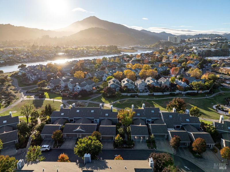 Beautifully remodeled townhome in the desirable Drakes Landing Complex. Private gated entrance follows a floral path to patio and front door. The entry patio offers a lovely extension of usable space for cozy outdoor gatherings and BBQs. The entry level includes a third bedroom or office with garage access. Two spacious primary suites are located on the lower level along with laundry area. The main level is where you will find a spacious kitchen, with new appliances along with a sunlit breakfast nook. The dining area sits adjacent to a lovely living room. The living room, offers cathedral ceiling, recessed lighting, built in fan, deck, as well as stunning Mt. Tam views, and overlooks beautiful Niven Park. A spacious two car garage provides plenty of extra storage. The well maintained complex provides a sunny setting for relaxing in the pool or spa. Only a few minutes walk and you are at markets, restaurants, coffee shops, stores and transportation.