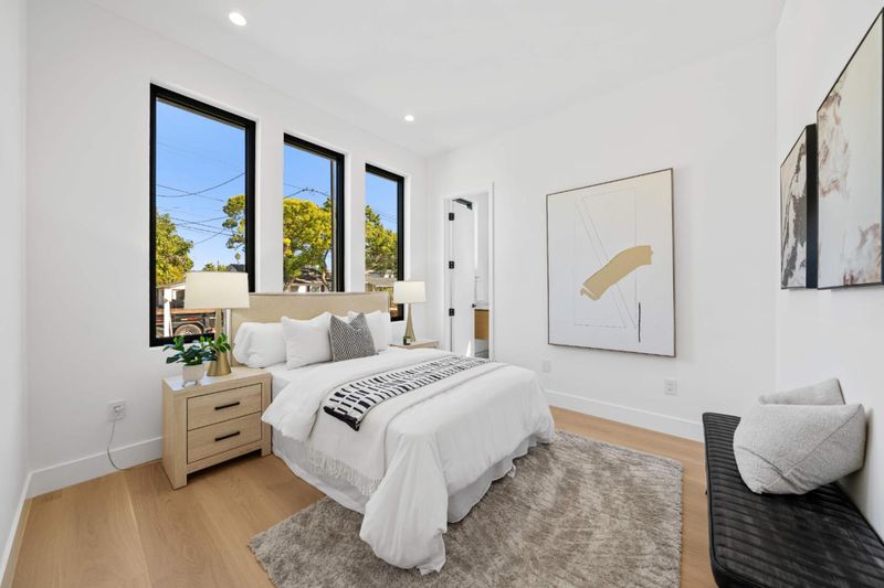 Welcome to this stunning brand-new single-story home in the heart of Mountain View. 10-year structural warranty! With over 3,300 sq.ft. of living space plus a 450 sq.ft. garage on an expansive 11,000+ sq.ft. lot, this rare find perfectly blends luxury and functionality. The thoughtfully designed open floor plan features 5 bedrooms, including 4 ensuite rooms, and showcases 7 skylights and large sliding glass doors that fill the home with warmth and sunshine. Premium finishes throughout include AB-grade white oak flooring, Marvin windows, 400amp panel, a full Thermador appliance suite, Bespoke cabinetry, and a spacious walk-in pantry. With 11-foot high ceilings, custom closets in every bedroom, and seamless indoor-outdoor flow, this home is ideal for both elegant entertaining and everyday comfort. Behind the scenes, no detail was spared, new gas line, whole-house insulation, integrated smart home features, and a water softener system ensure quality and convenience for years to come. Set toward the front of the lot, the property offers an expansive backyard ready for your dream outdoor lifestyle.whether its a pool, garden, or ADU. This residence not only provides modern luxury but also exceptional investment opportunity in one of Silicon Valleys most sought-after neighborhoods.